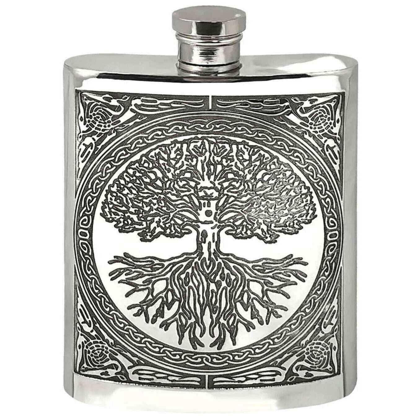 Compagnia di peltro inglese 6oz Celtic Tree of Life Fask - Silver