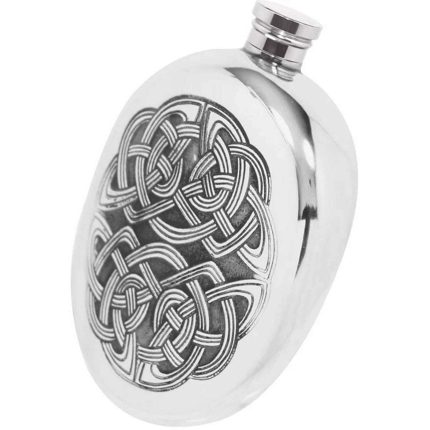 Compagnia di peltro inglese 6oz Celtic Wedge Flask - Silver