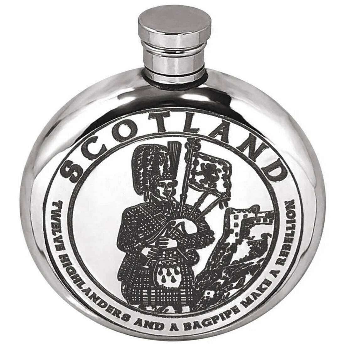 Compagnia di peltro inglese da 6oz Highland Piper Flask - Silver