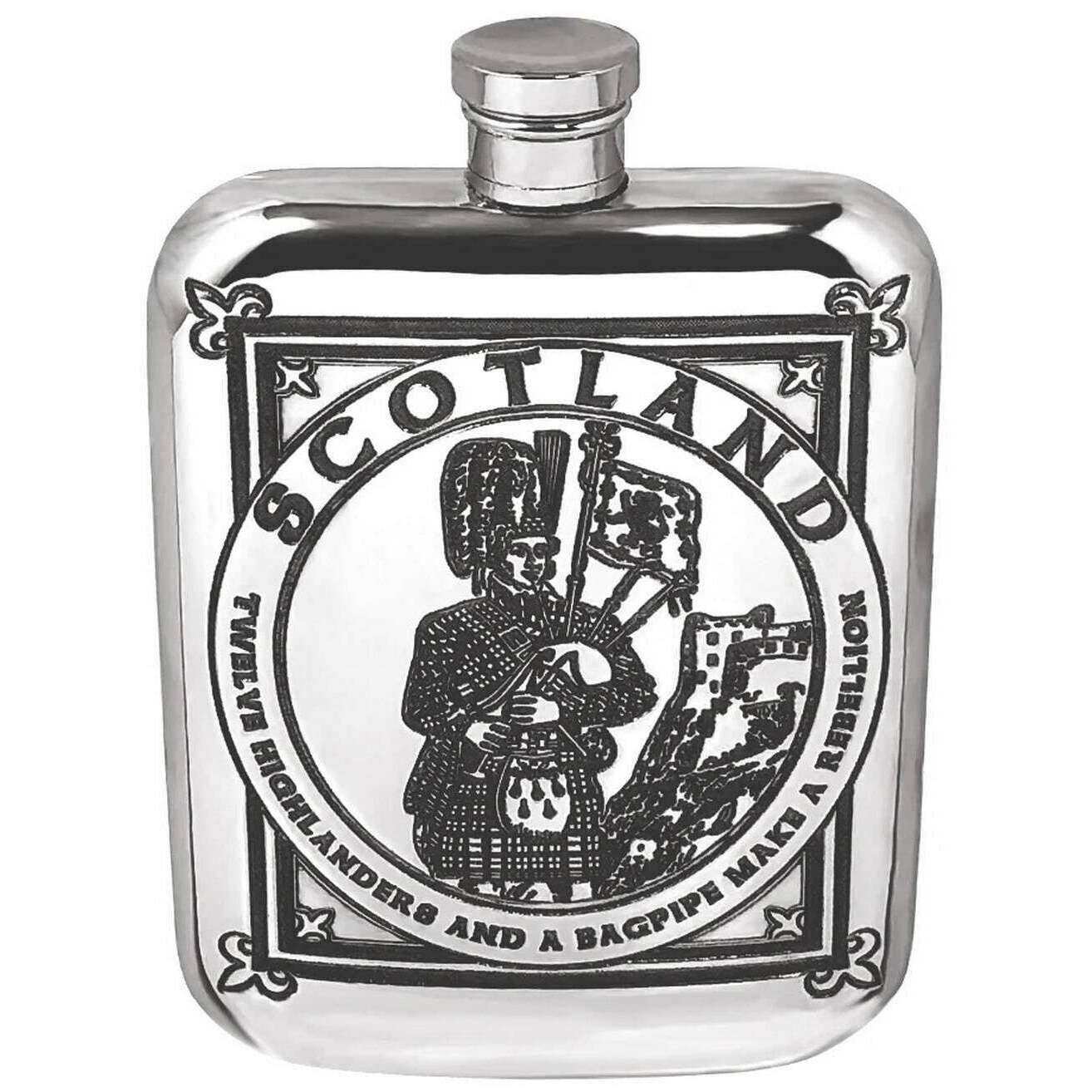 Compagnia di peltro inglese da 6oz Highland Piper Flask - Silver