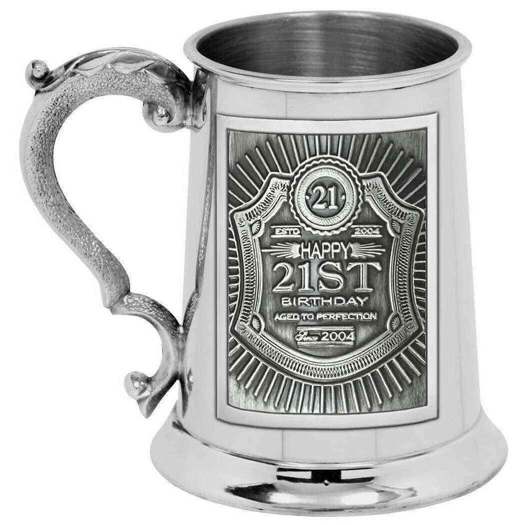 Offerto da The Brand English Pewter Company, questo Silver Unisex in rilievo 21 ° Pewter 1 Pint Tankard è realizzato in peltro. Misura 12,75 cm (altezza). La compagnia di peltro inglese ha reso questo 21 ° peltro in rilievo 1 pint tank in Gran Bretagna. Tutti i bevande e il vetro sono disponibili completi di imballaggi aziendali di peltro in inglese. La compagnia di peltro inglese ha messo in rilievo il 21 ° Pewter 1 Pint Tankard - L'argento farà il regalo perfetto per quel compleanno speciale. Presenta una maniglia robusta con un design intricato e offre un fascino classico con la sua finitura pesante. Riempilo con la tua birra preferita o birra artigianale e solleva un brindisi per l'occasione speciale. Il materiale di alta qualità garantisce che emana il fascino senza tempo.