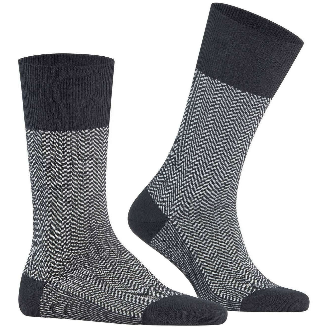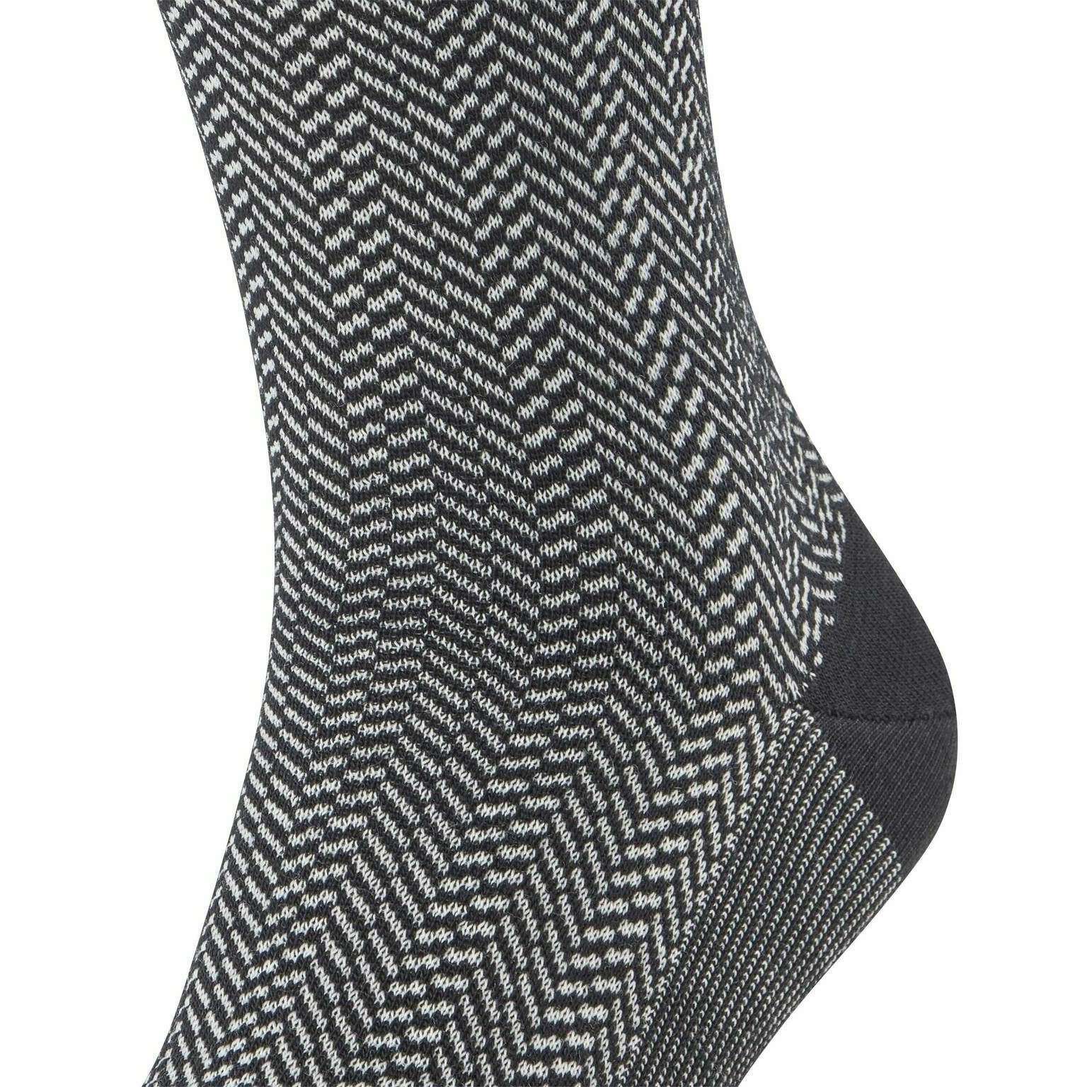 Questi calzini da aeroporto da uomo a righe di pesce del marchio Falke sono realizzati in 62% lana vergine, 24% poliammide, 13% cotone e 1% elastan e sono presentati in nero. Anche i calzini neri sono disegnati con motivo a spina di pesce. Si consiglia di lavare a 30 gradi per mantenerli in buone condizioni. Tutti i calzini sono completi di targhette false. I calzini Falke Airport Herringstripe - Nero sono tessuti con la corretta combinazione di lana merino leggera e termoregolatrice all'esterno e piacevole cotone morbido all'interno. Per il lavoro o il tempo libero, questi calzini hanno polsini estesi per una vestibilità stropicciata sulla gamba. Il motivo a spina di pesce bicolore reinterpretato aggiunge un tocco moderno ed elegante e conferisce un tocco speciale a qualsiasi outfit. Resta comodo tutto il giorno con la vestibilità Falke Perfect e divertiti a indossare queste calze più e più volte con una durata ottimale grazie alle zone di stress rinforzate.