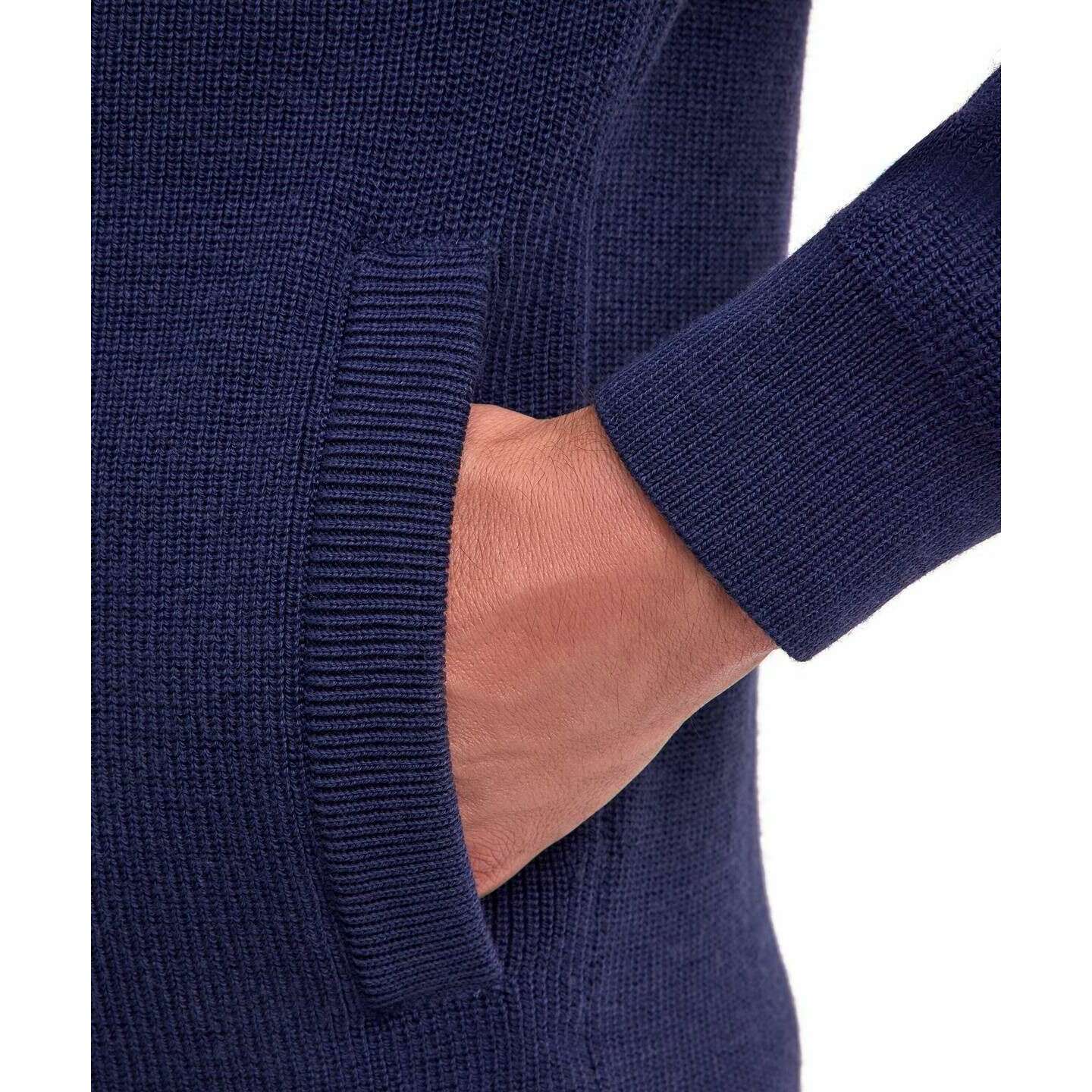 • Cotone biologico certificato, lana vergine, tasche laterali, vestibilità regolare, trama con perline, doppia cerniera, alta qualità, lavorazione 'Fully Fashioned', durevole