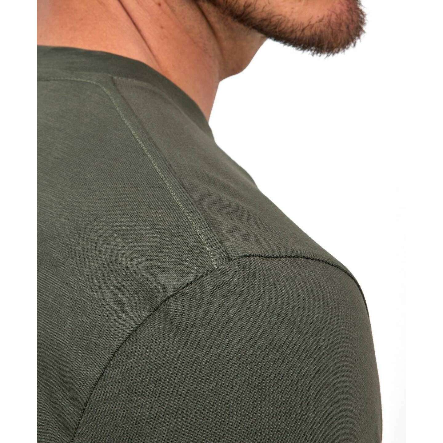 • Jersey Flam , leggero , traspirante , vestibilità regolare , spalle francesi , orlo e polsini con cuciture larghe , effetto rinfrescante