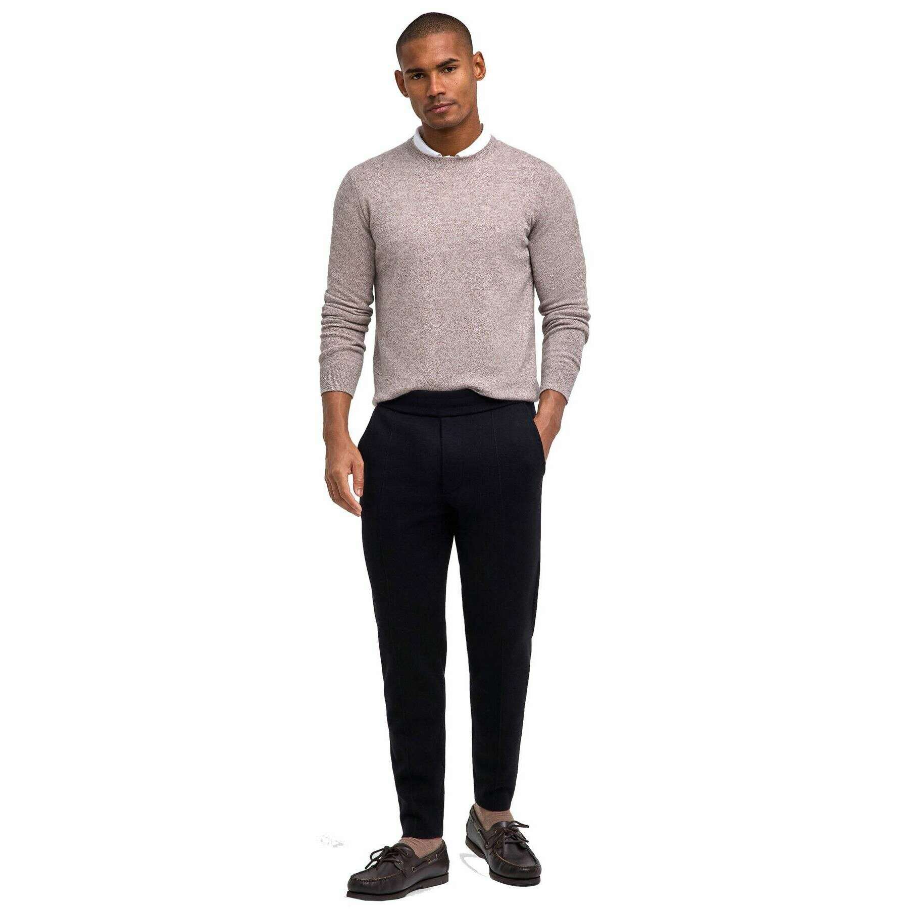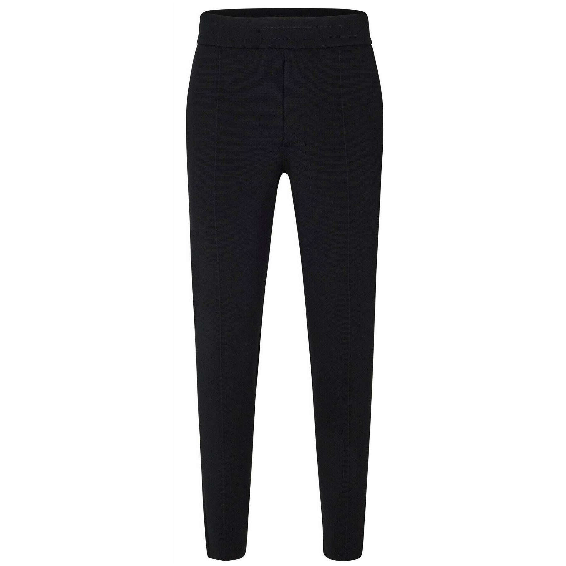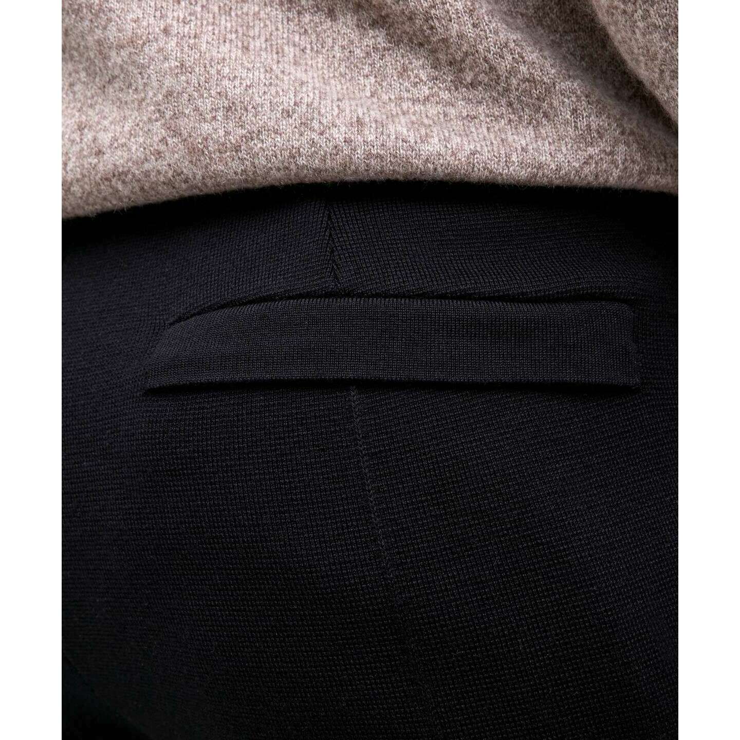 • Tecnica di lavorazione a coste Milano, Pieghe fini lungo le gambe, Cintura elasticizzata, Coulisse regolabile, Apertura frontale con zip, Tasche, Lana Merino Mulesing Free, Gamba affusolata