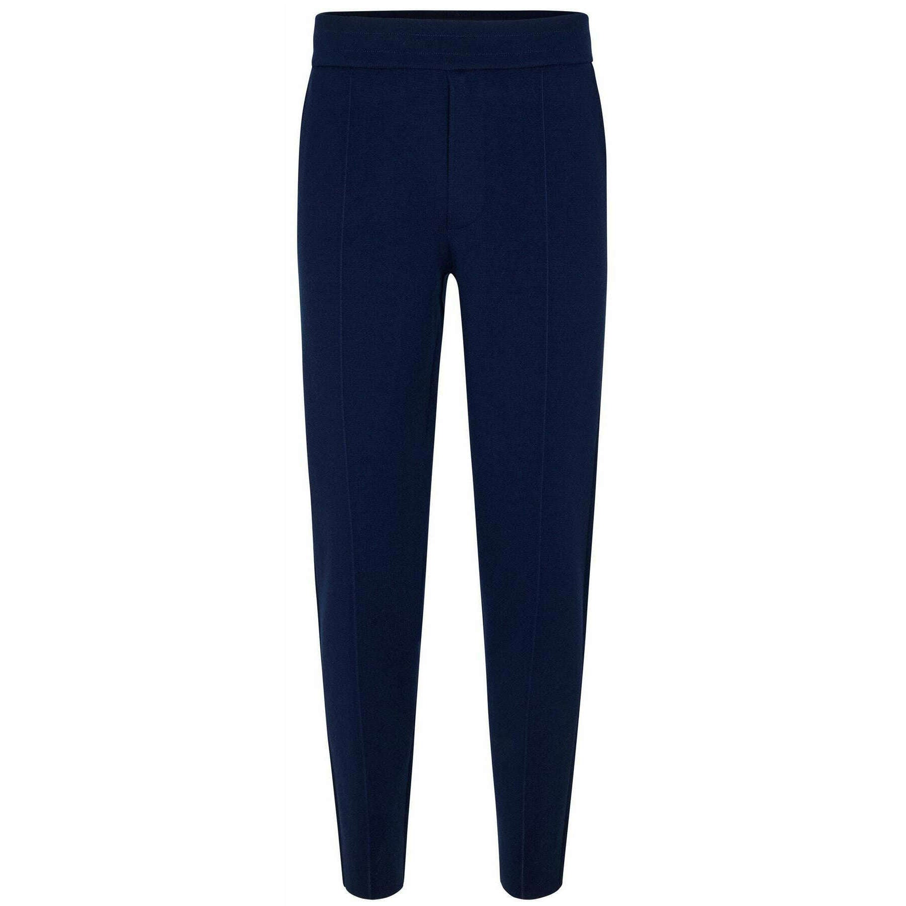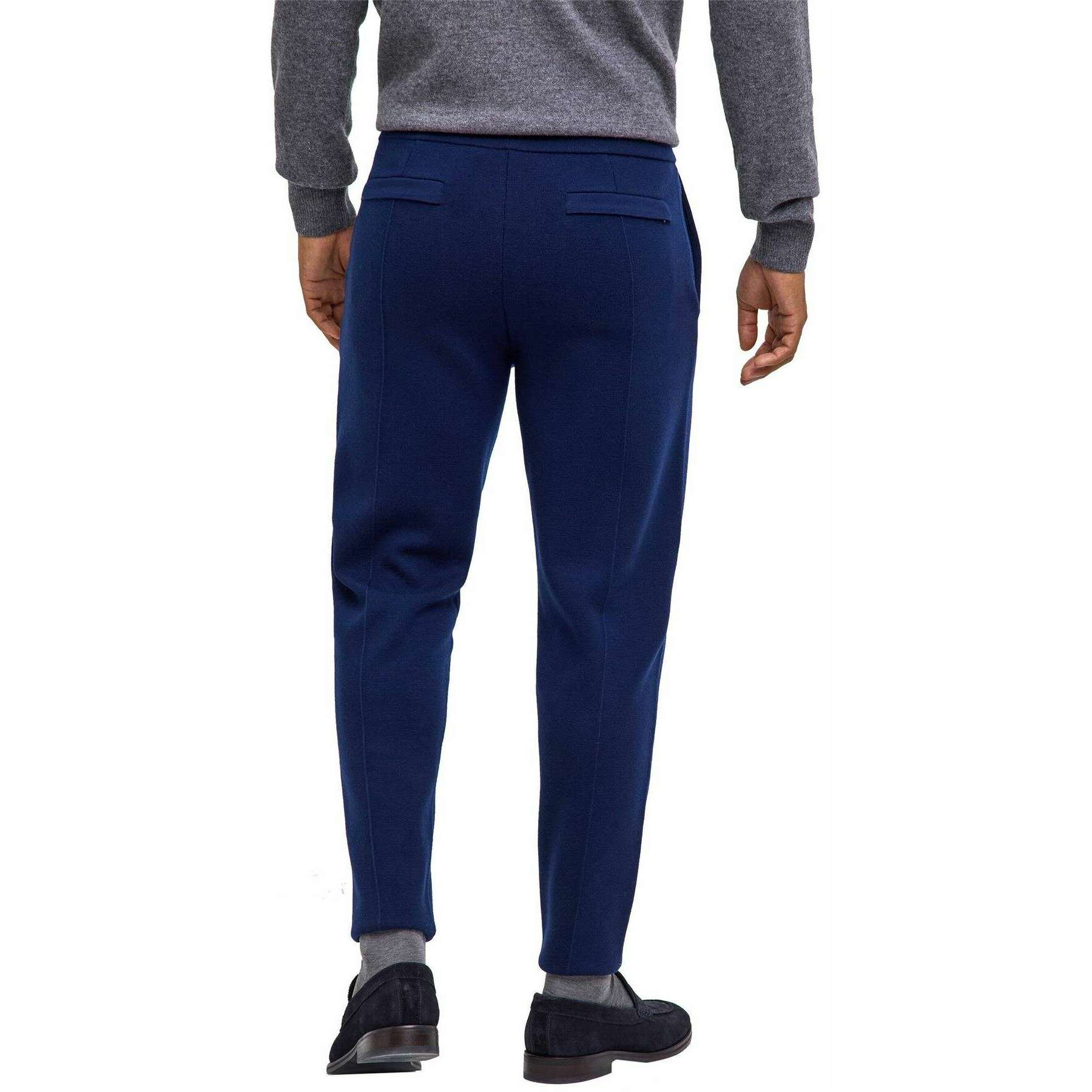 • Tecnica di lavorazione a coste Milano, Pieghe fini lungo le gambe, Cintura elasticizzata, Coulisse regolabile, Apertura frontale con zip, Tasche, Lana Merino Mulesing Free, Gamba affusolata