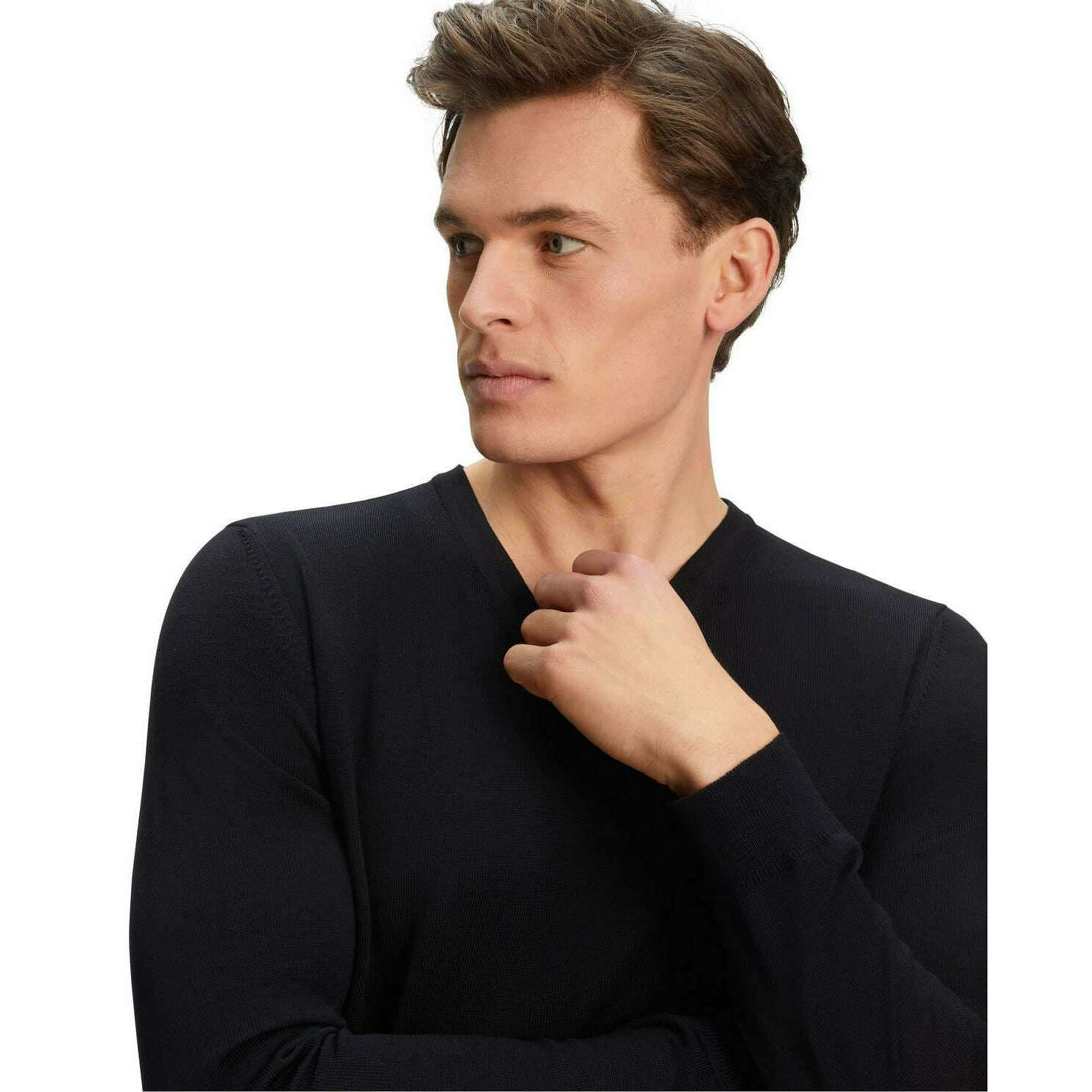 Maglione Falke Merino X-Fine con scollo a V - Nero