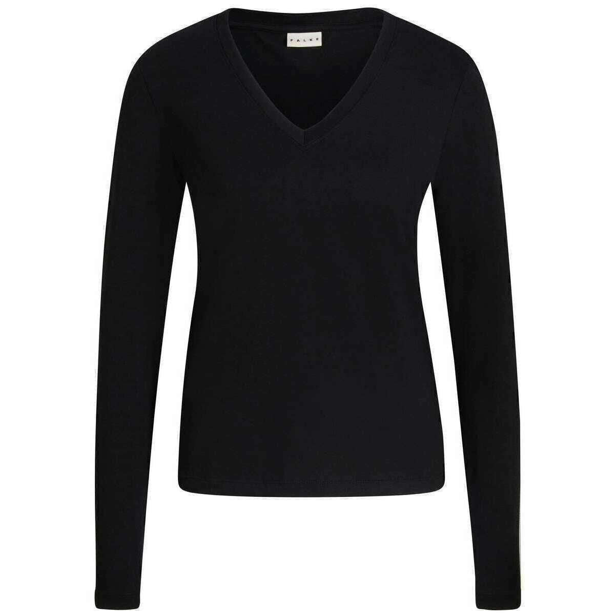 Camicia a maniche lunghe a V -Neck Falke Pima Jersey - Nero
