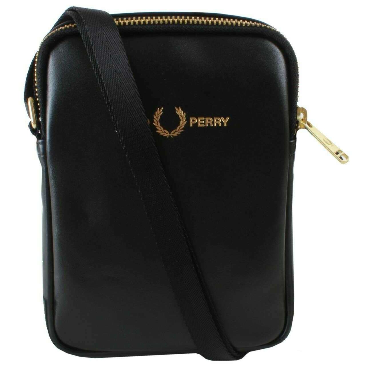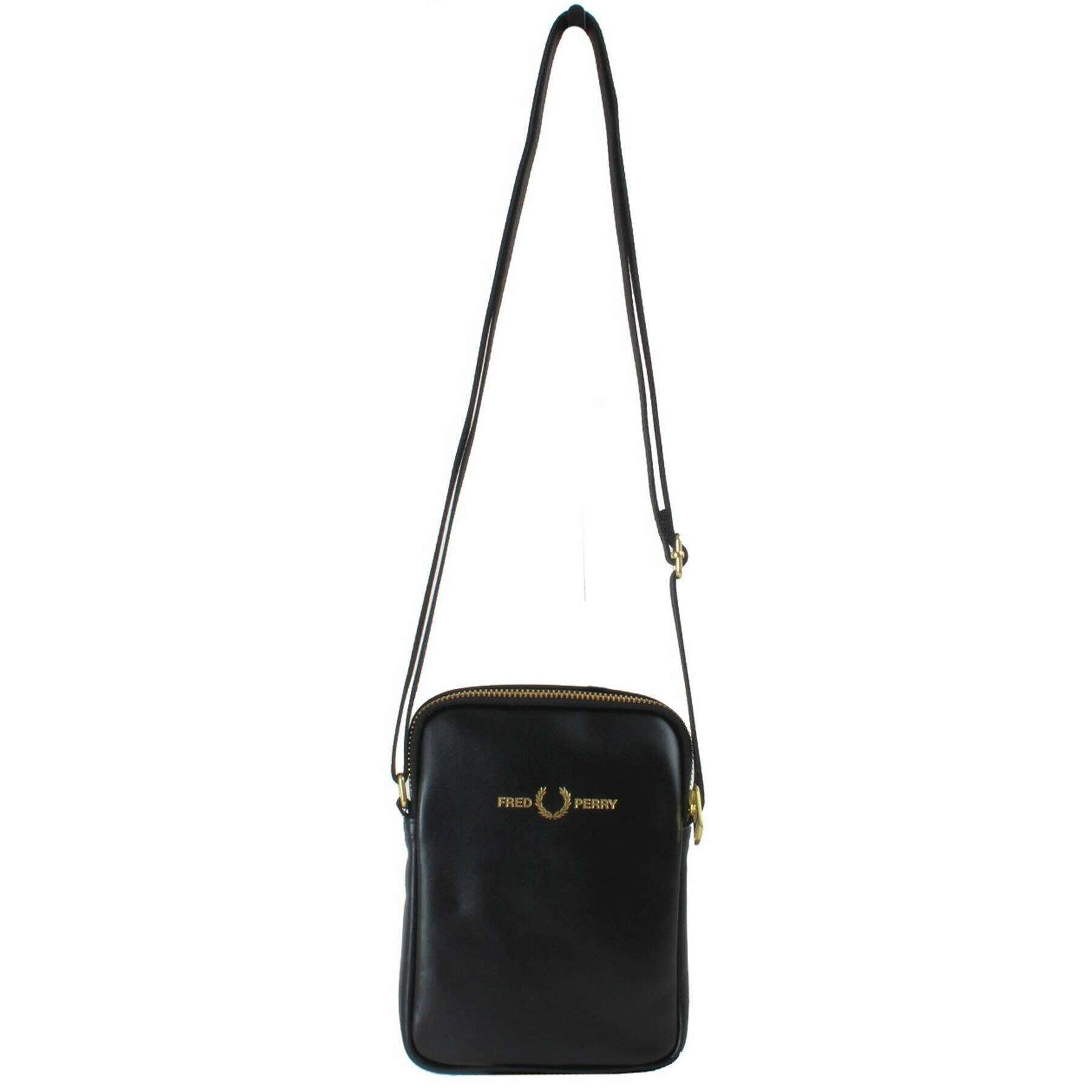 Borsa laterale piccola Fred Perry in pelle liscia - Nera