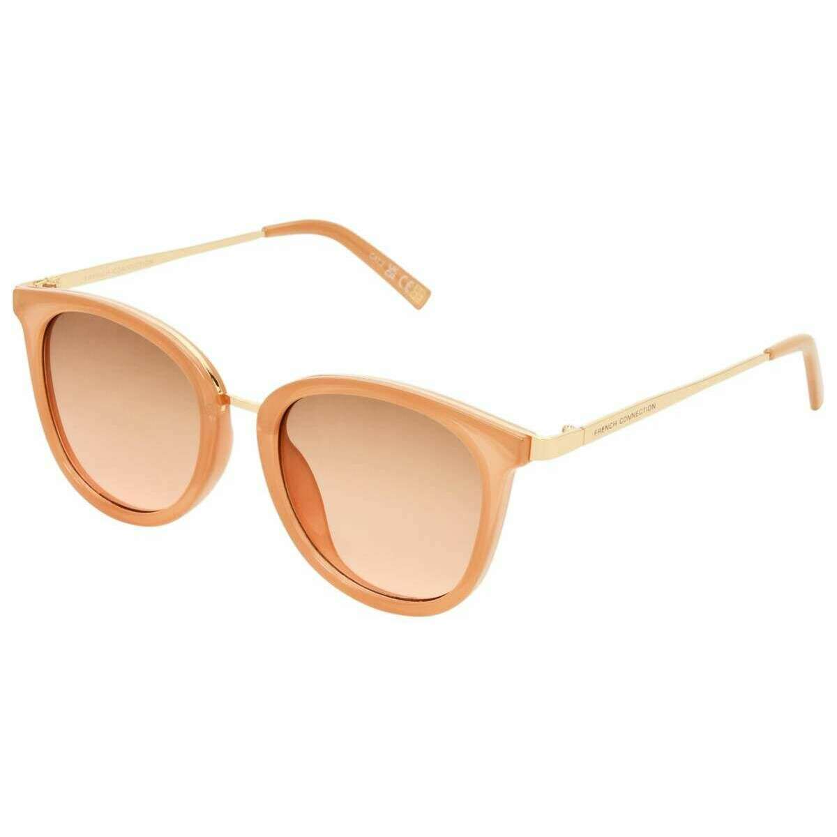 Occhiali da sole rotondi French Connection con finiture in metallo morbido - Rosa latteo/oro