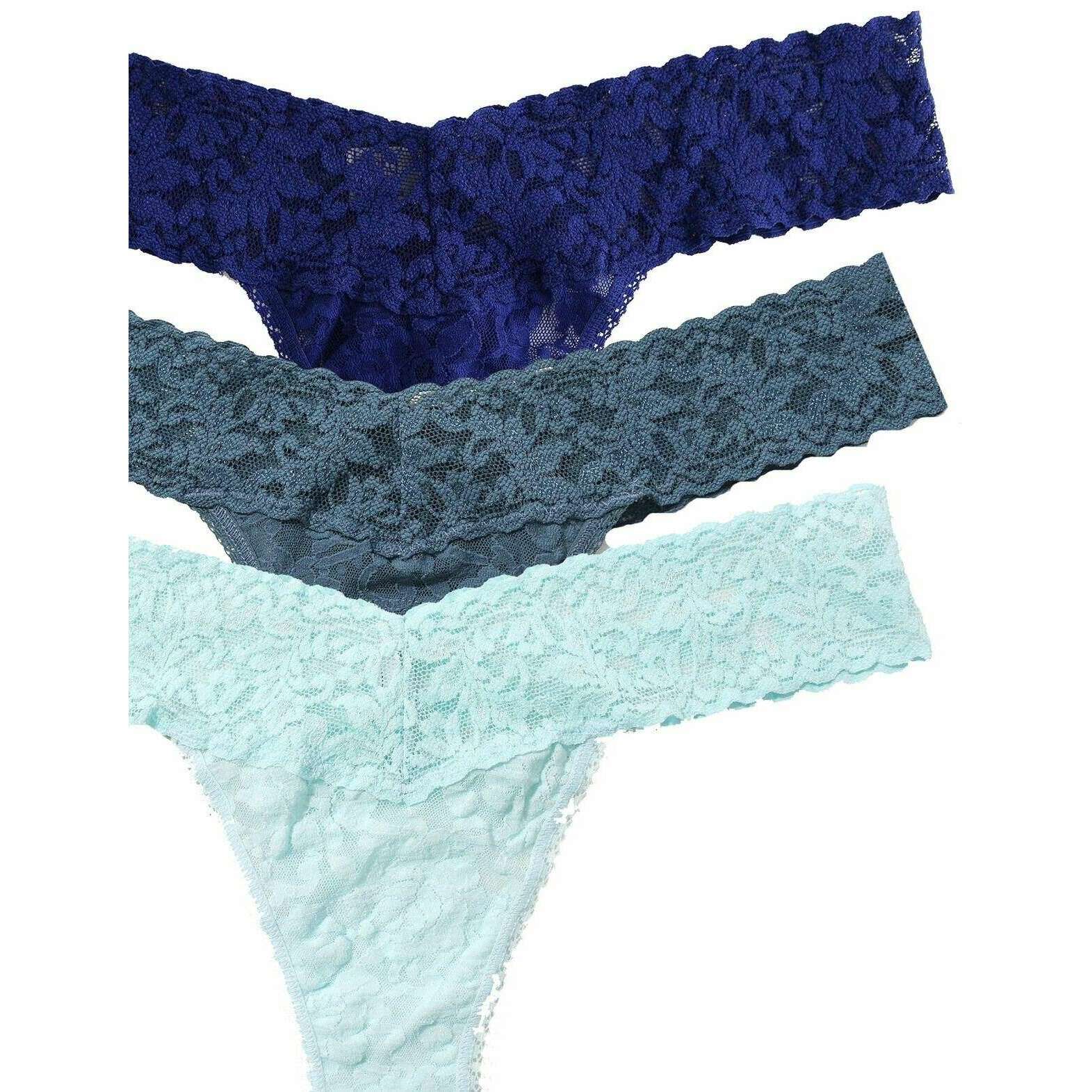 Perizoma Hanky Panky Signaure in pizzo a vita bassa, confezione da 3 - Blu Odissea/Nube temporalesca/Celeste