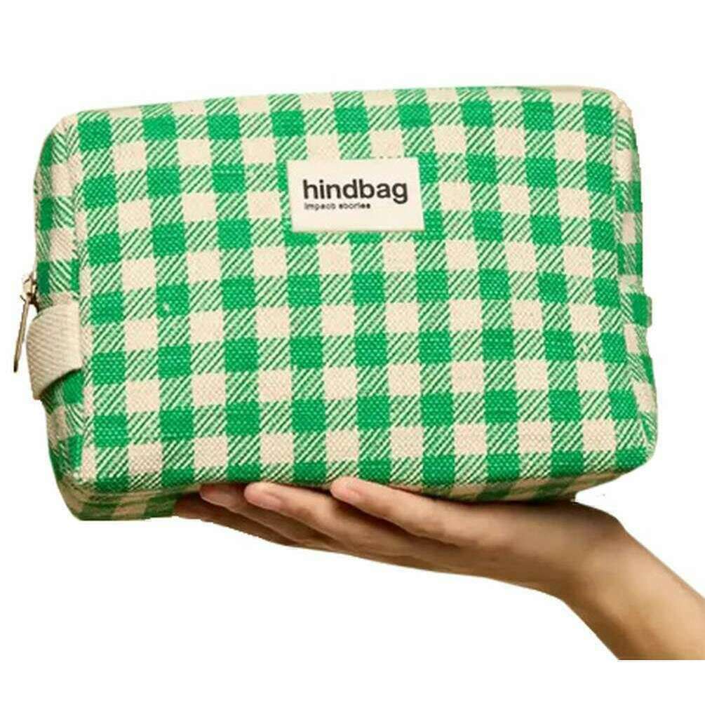 Prodotto in cotone biologico al 100% è questa borsa da toeletta unisex di Vichy Unisex Leon del designer Hindbag. Misura 16 cm (altezza) x 22 cm (larghezza) x 8 cm (profondità). Tutte le borse sono complete di imballaggi hindbag. La borsa da toeletta Hindbag Leon - Vichy Green è un accessorio elegante e pratico progettato per viaggiatori e pendolari quotidiani che apprezzano sia lo stile che la funzionalità. La maniglia pratica garantisce una facile maneggevolezza e la chiusura sicura della cerniera mantiene il tuo elemento essenziale. Fissalato con cotone organico abbinato in un modello di stampa a blocchi, questa borsa offre ampio spazio per i tuoi articoli da toeletta senza essere ingombrante.
