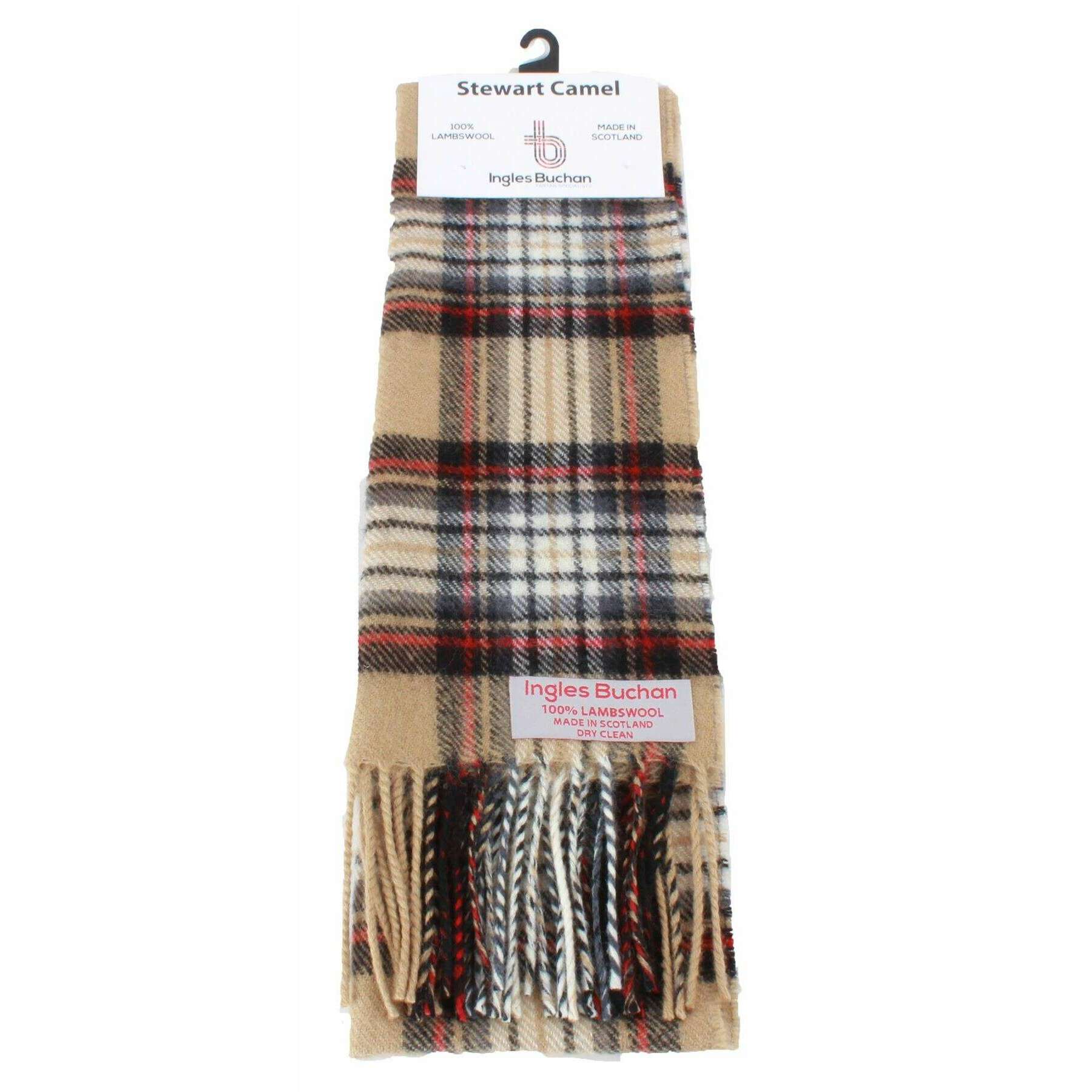 Sciarpa moderna in lana d'agnello Ingles Buchan Stewart Camel - Beige/Nero/Rosso