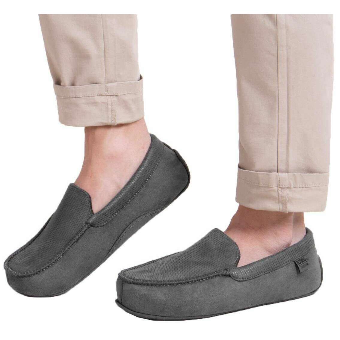 Pantofole mocassino intelligenti con motivo quadrato Isotoner - Grigie