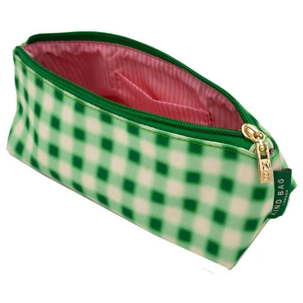 Questa custodia essenziale da donna del marchio Kind Bag London è realizzata al 100% in plastica riciclata ed è presentata in verde. Misura 24 cm (altezza) x 6,5 cm (larghezza) x 6,5 cm (profondità). Tutte le custodie accessorie sono complete di gentile confezione in sacchetto. La custodia Kind Bag London Essentials - Plaid sfocato verde/rosa è l'aggiunta perfetta alla tua borsa da scuola/lavoro. Questa custodia per cancelleria è perfetta per riporre tutti i tuoi oggetti di cancelleria ed è dotata di una pratica tasca interna per spazio extra.