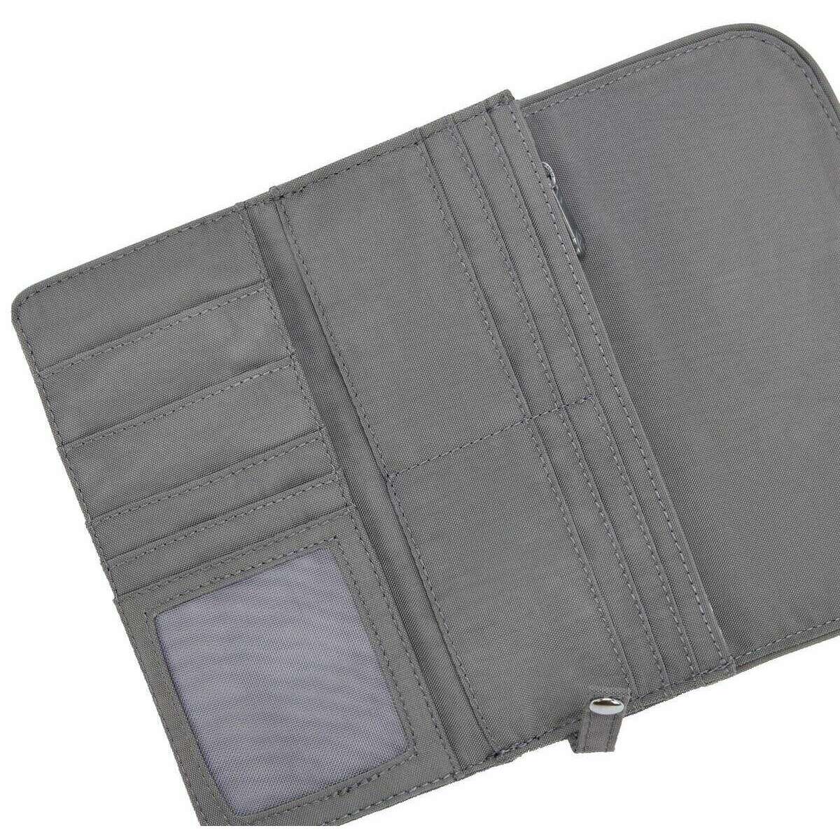 • Tecnologia RFID , Chiusura con bottone a pressione , Scomparti per contanti , Dieci scomparti per carte di credito , Tasca interna con cerniera , Slot per carta d'identità