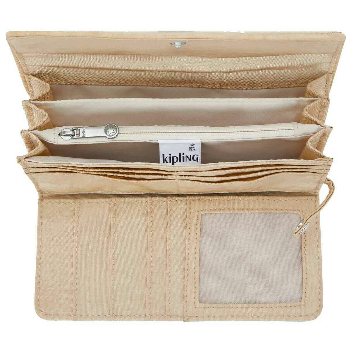 Questo portamonete da donna ben fatto di Kipling è disponibile in un colore beige scintillante ed è realizzato al 60% in poliammide e al 40% in poliammide riciclata. Misura 10 cm (altezza) x 18,5 cm (larghezza) x 3 cm (profondità). Tutte le borse sono complete di confezione Kipling. Il portamonete Kipling Money Land - Sparkled Beige è un accessorio indispensabile per gli adulti alla moda. Questo portafoglio semplice ma resistente è dotato di scomparti per contanti, dieci slot per carte di credito, una tasca interna con cerniera e uno slot per documenti di identità per la patente di guida o il documento di lavoro. Progettato per tenere al sicuro i tuoi oggetti essenziali con una chiusura con bottone a pressione, questo portafoglio è perfetto per i viaggiatori e chiunque sia sempre in movimento. La tecnologia RFID impedisce agli hacker di sottrarre dati in modalità wireless creando uno scudo virtuale per proteggere le tue carte scheggiate.