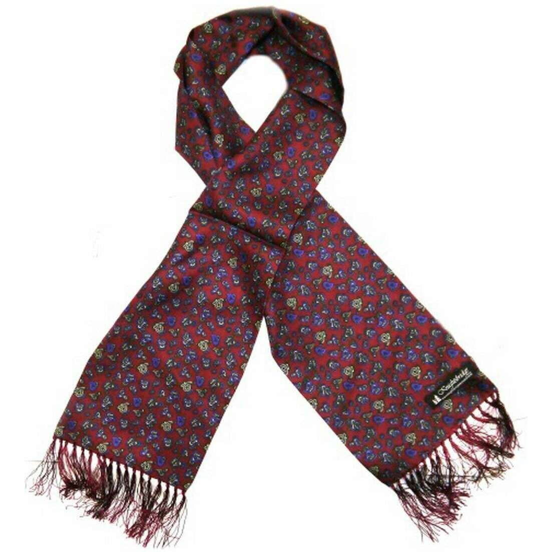 Sciarpa da aviatore in seta Paisley piccola di Knightsbridge Neckwear - Borgogna/Blu
