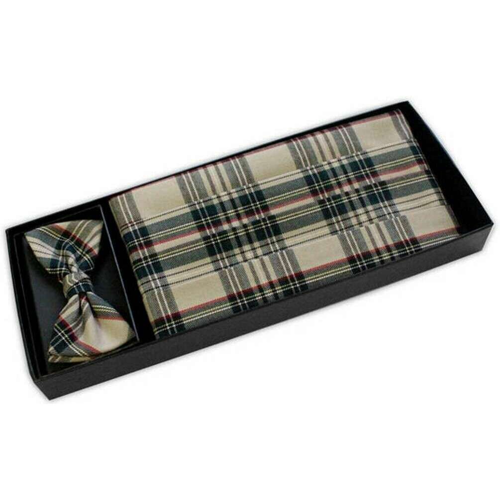 Set di fascette e papillon in tartan Knightsbridge - Beige
