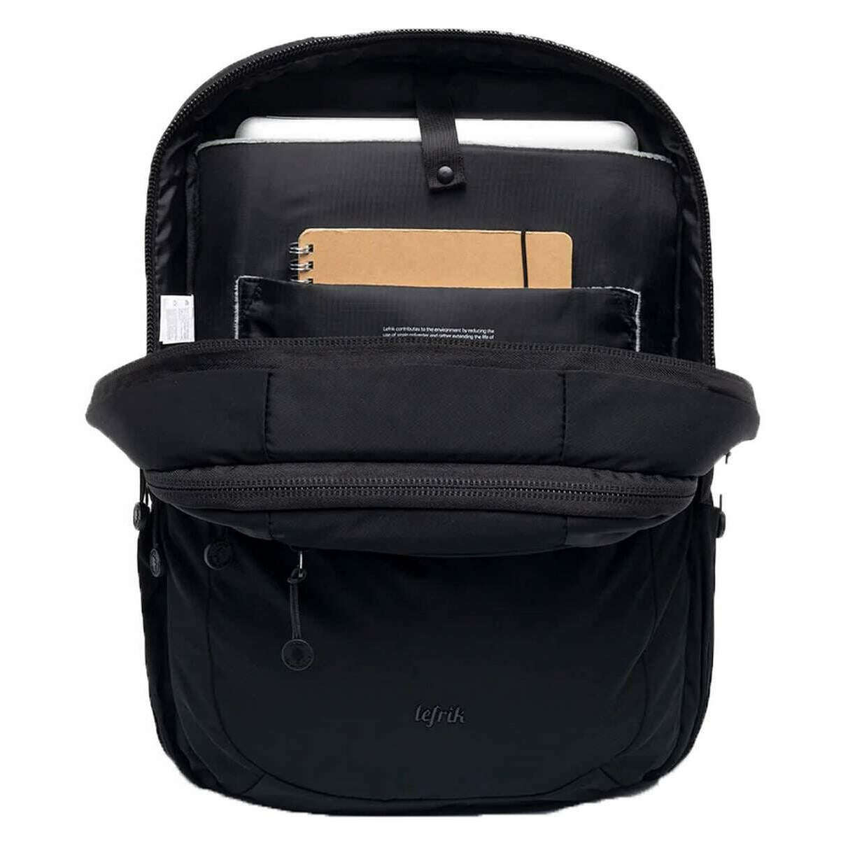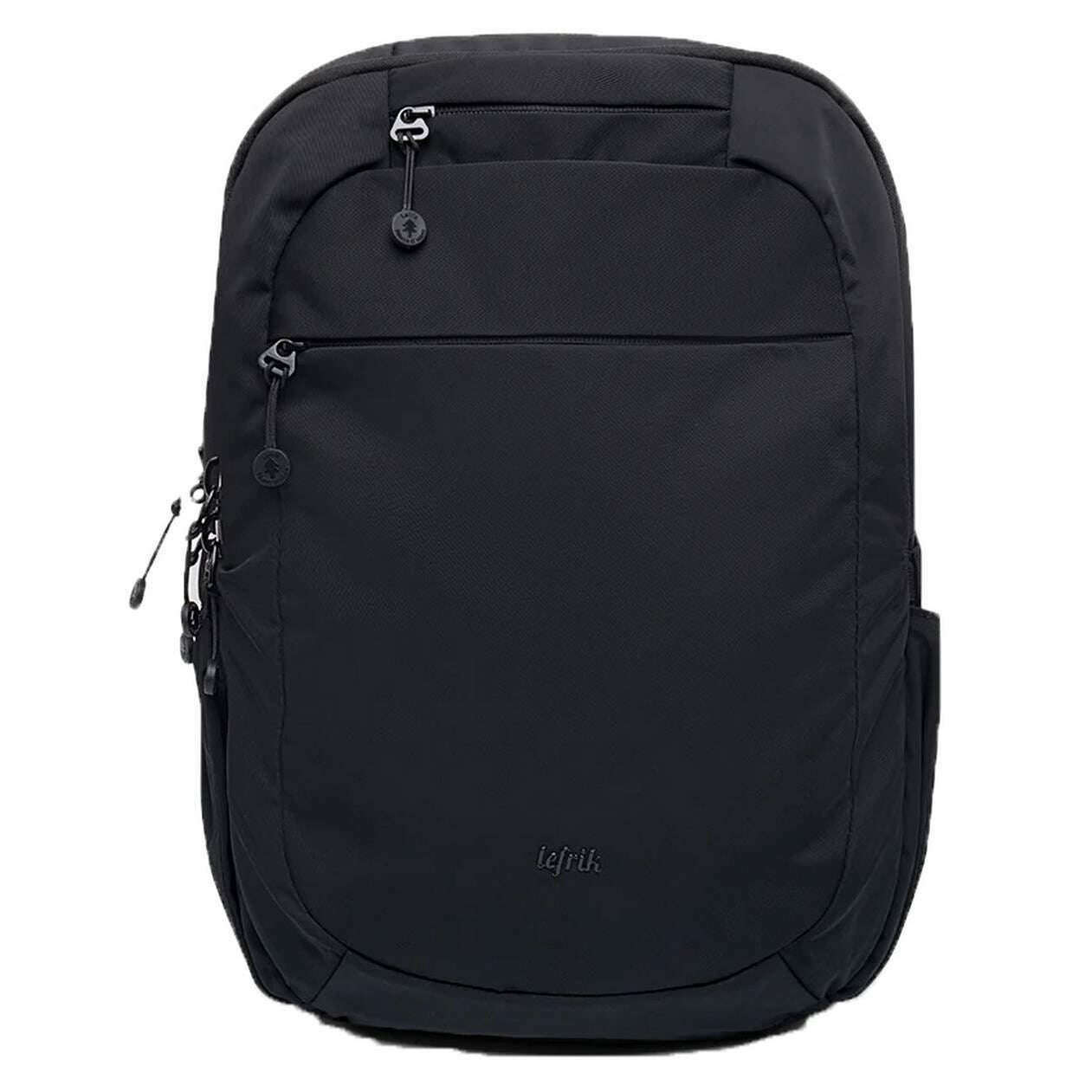Il designer Lefrik ti ha proposto questa borsa unisex in tessuto ultraleggero al 100% utilizzando i toni del nero. Misura 40 cm (altezza) x 25 cm (larghezza) x 12 cm (profondità). Tutte le borse sono complete di confezione lefrik. Lo zaino Lefrik 101 - Nero è una scelta elegante, sostenibile e pratica per gli spostamenti quotidiani e i viaggi d'affari. Realizzato con bottiglie di plastica riciclata, questo zaino è dotato di uno scomparto principale con custodia imbottita che può contenere laptop, tablet e oggetti essenziali quotidiani fino a 15,6". Per un'organizzazione efficiente, questa borsa è dotata di due tasche con cerniera ad accesso rapido, una sulla parte superiore e una sul davanti. Con schienale e maniglie imbottiti per il massimo comfort, questo zaino può essere fissato alla maniglia di un trolley per tenerlo al sicuro durante i tuoi viaggi.
