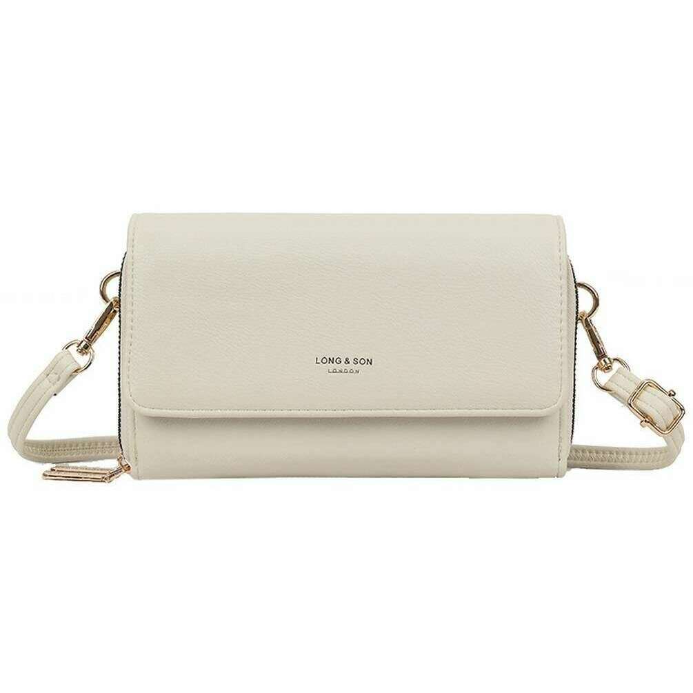 Presentata dal marchio Long and Son, questa borsa a tracolla da donna bianco sporco è realizzata al 100% in poliuretano. Misura 12,5 cm (altezza) x 20 cm (larghezza) x 5 cm (profondità). Tutte le borse sono complete di confezione long&son. La borsa a tracolla Long and Son Purse - Off White è un must se la porti con leggerezza. Dotato di più sezioni per i tuoi oggetti più piccoli, sei porta carte e uno scomparto per banconote per la comodità di non dover mettere in valigia una borsa. Lo stile piccolo e compatto è ottimo per un abbigliamento leggero e la tracolla regolabile e staccabile consente di indossarla a tracolla o a spalla e può anche essere utilizzata come pochette. Completo di sottile marchio Long & Son.