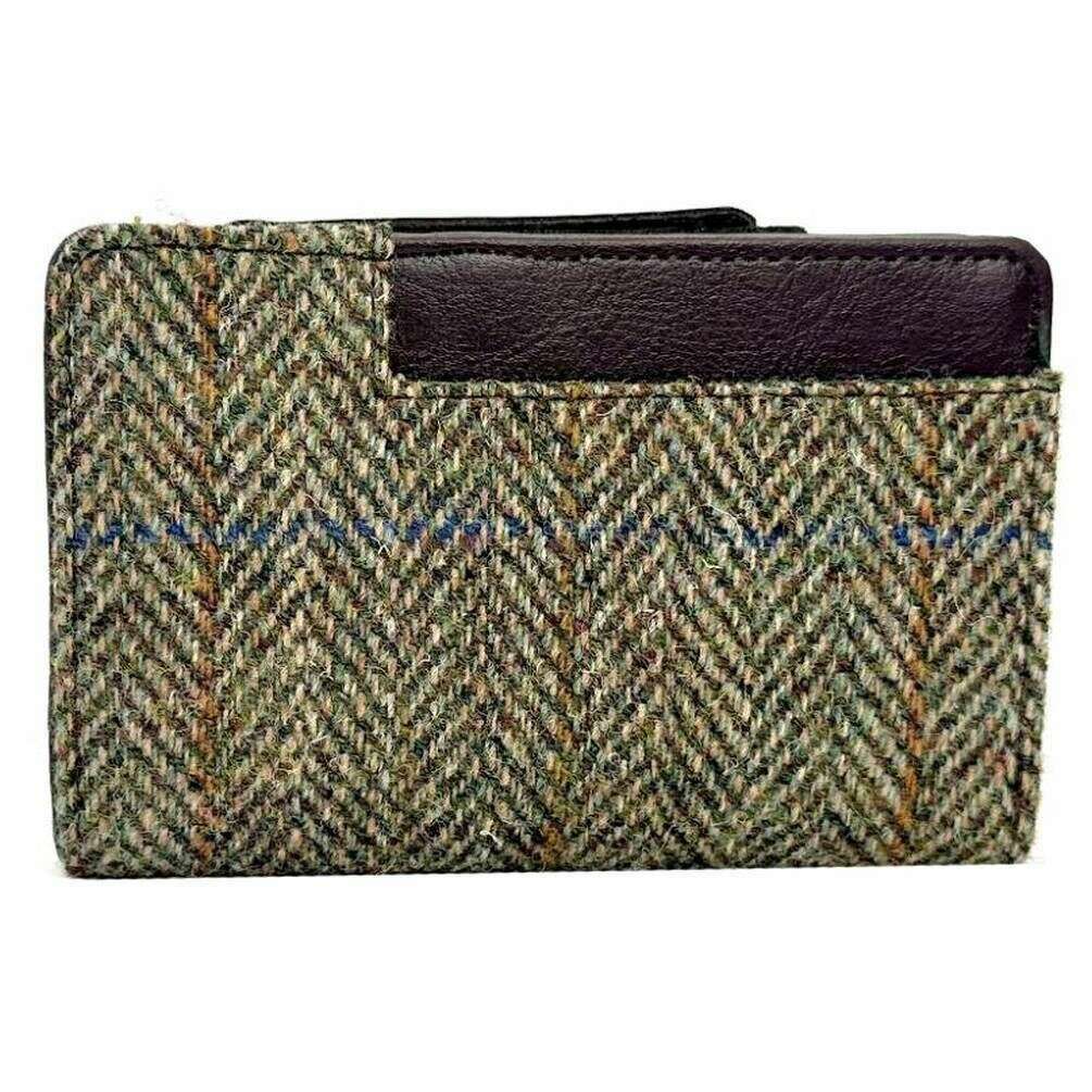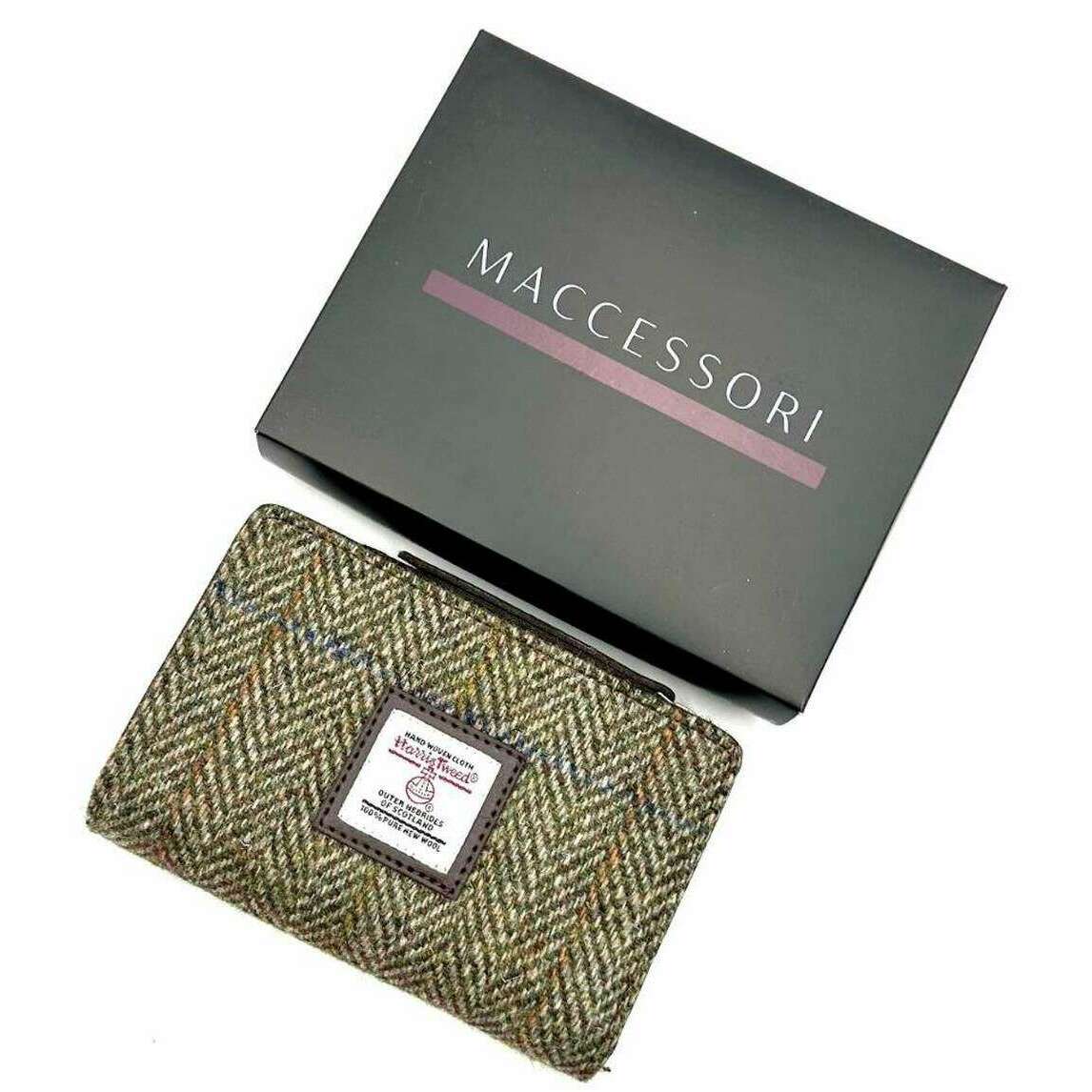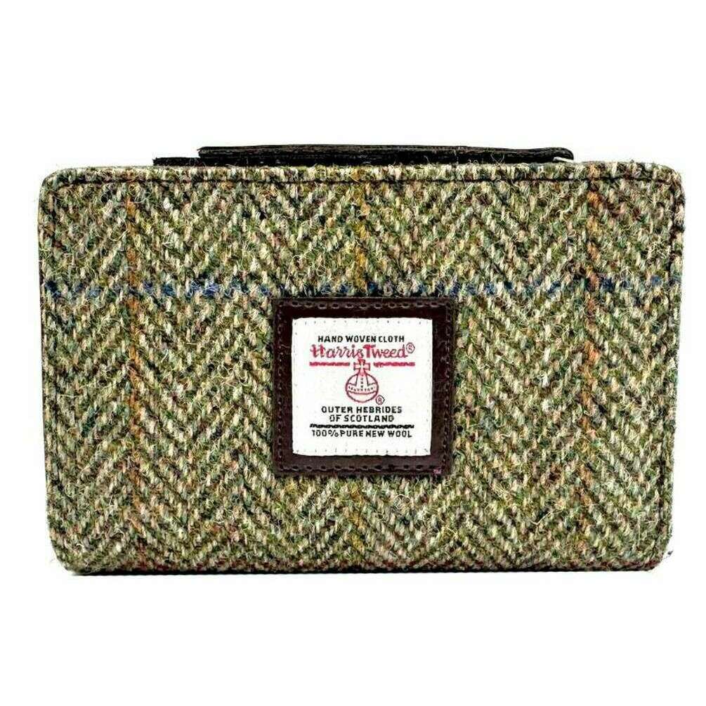 Borsa Maccessori Harris Tweed con cerniera media - Verde country