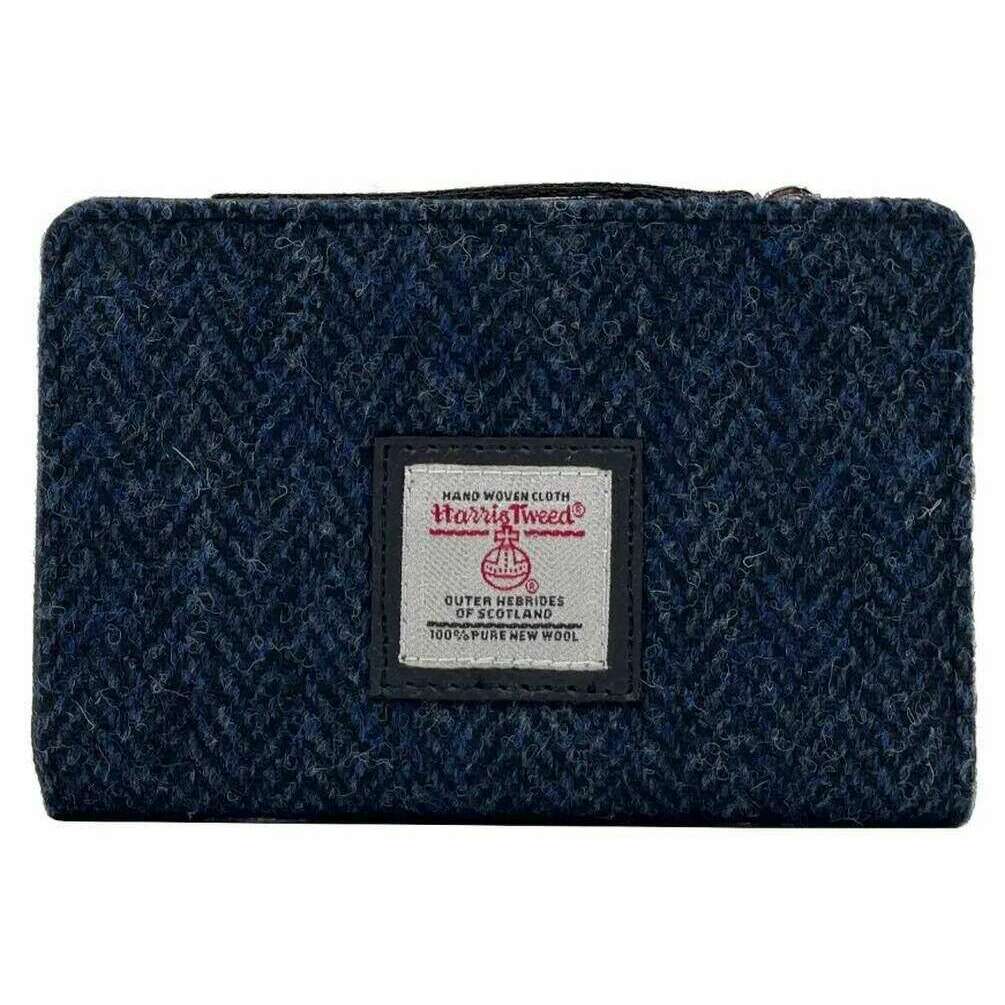 Borsa Maccessori Harris Tweed con cerniera media - Blu navy