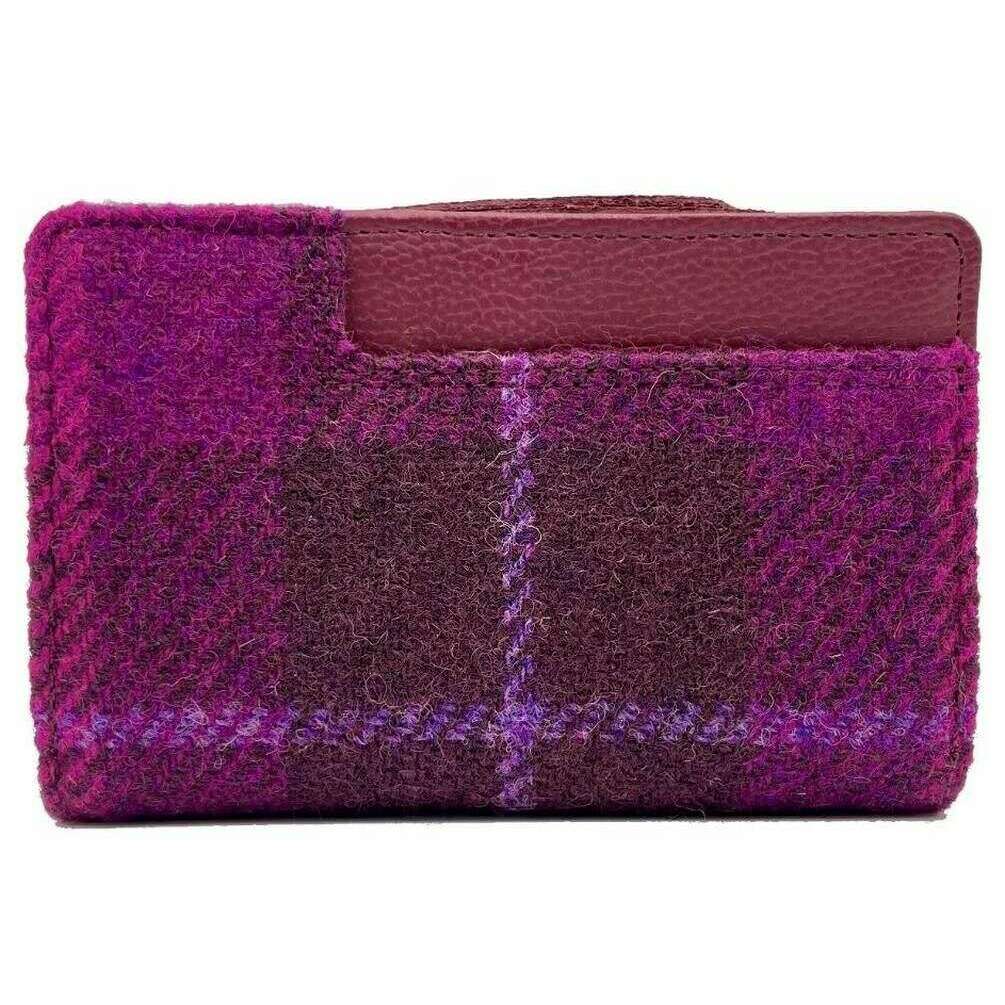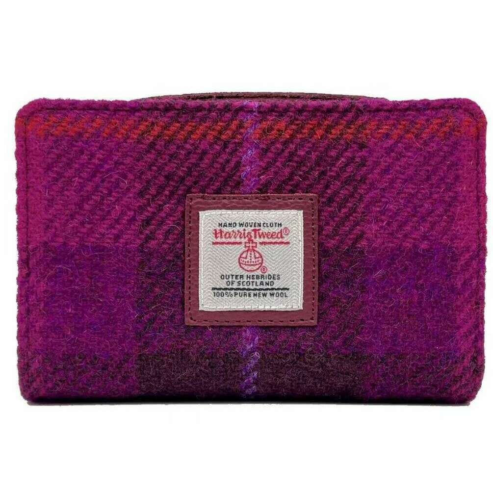 Borsa Maccessori Harris Tweed con cerniera media - Viola/Rosa