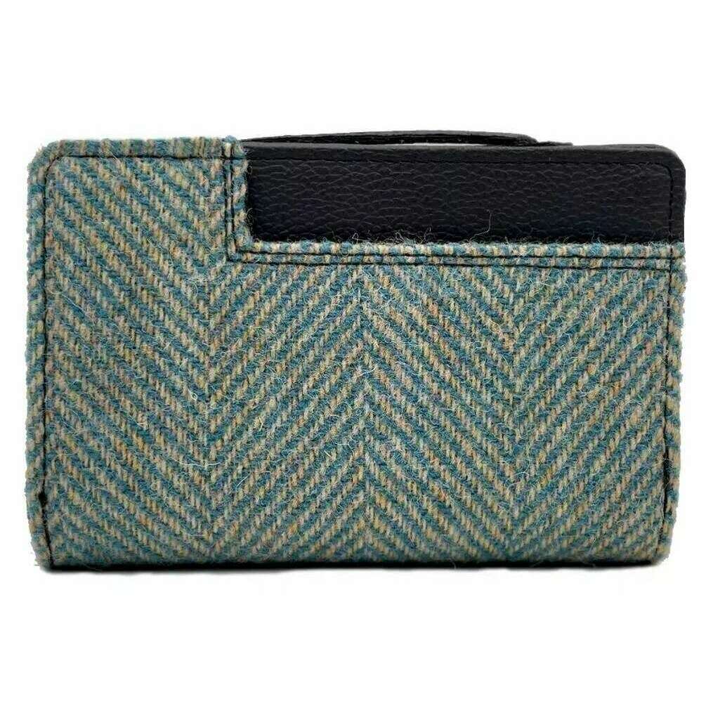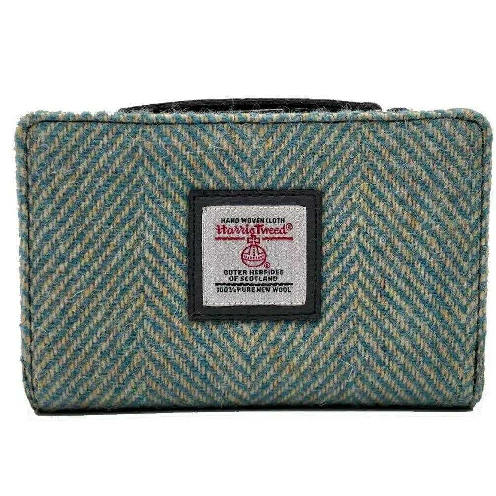 Borsa Maccessori Harris Tweed con cerniera media - Blu turchese