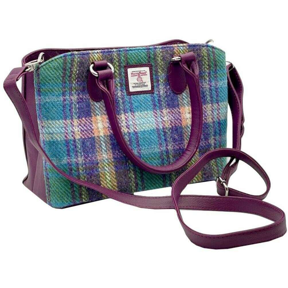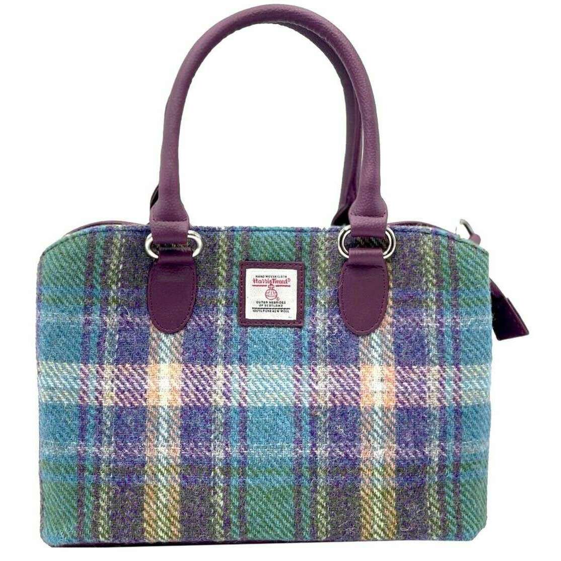 Borsa Maccessori Harris Tweed con manico superiore - Verde/Viola