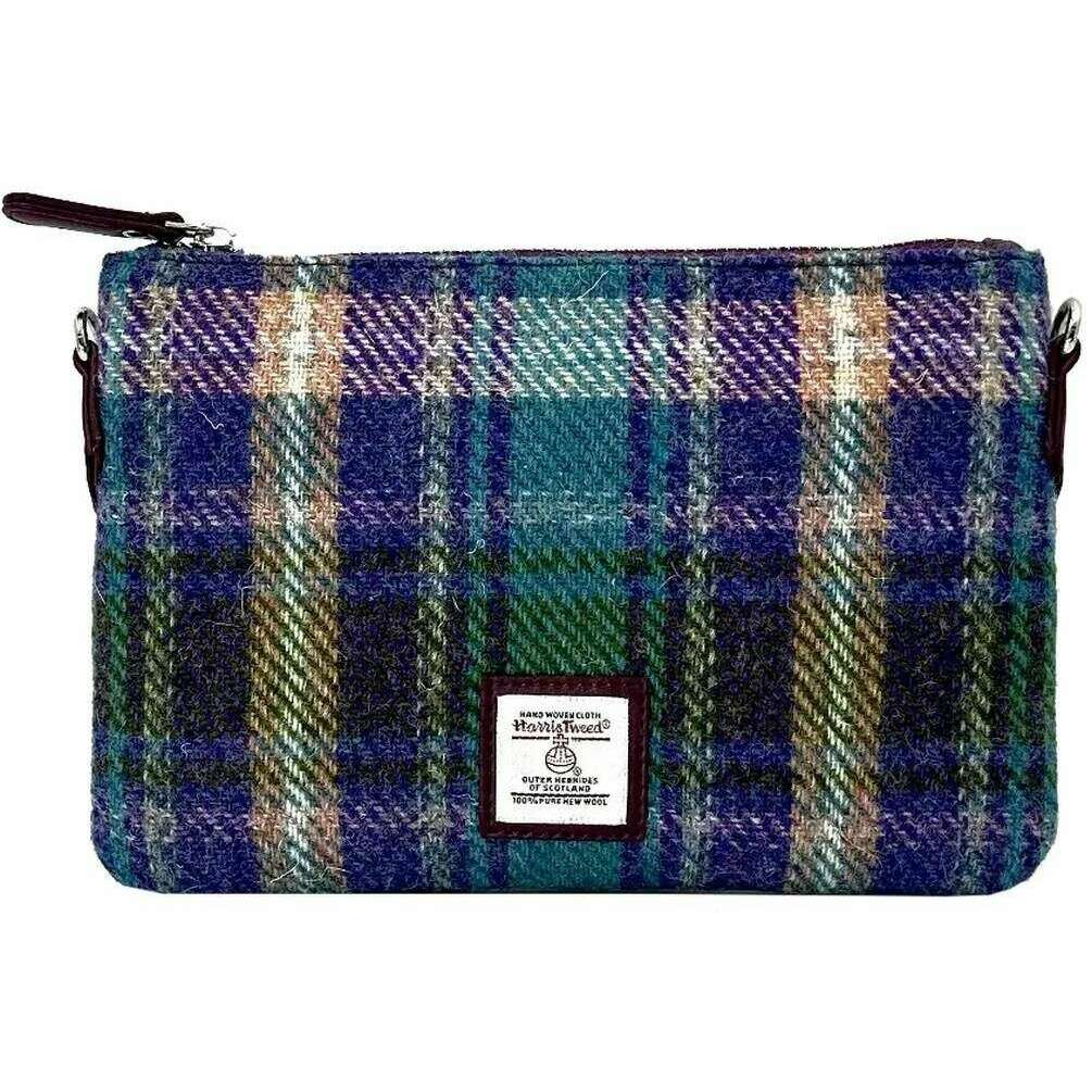 Pochette Maccessori Harris Tweed con cerniera - Verde/Viola