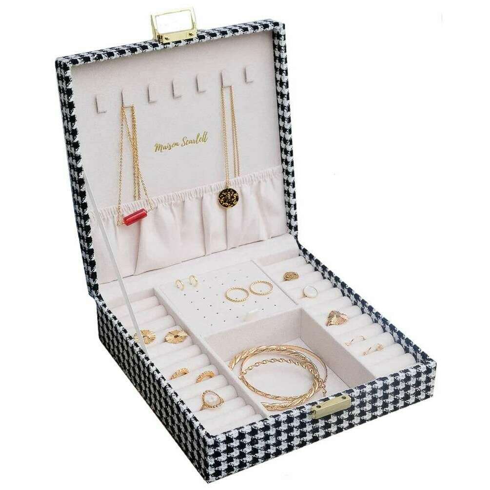 Maison Scarlett Anne Houndstooth Jewellery Box - Nero