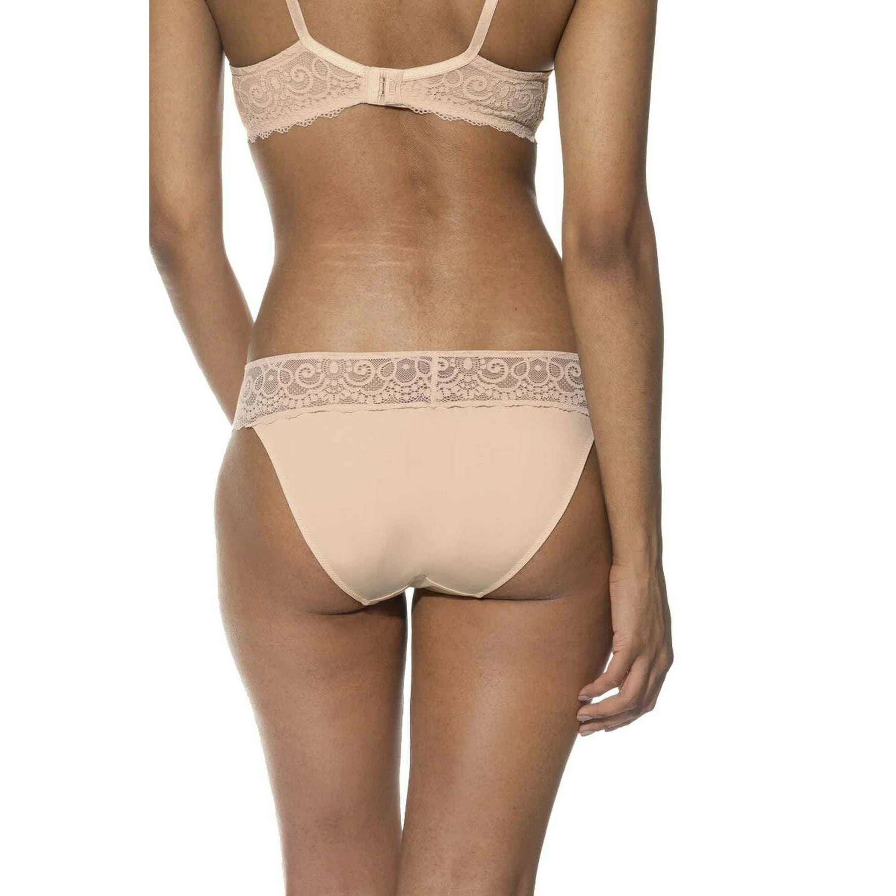 • Vita media e profonda, cintura piatta per il massimo comfort, inserto in cotone sul tassello, dettagli in pizzo