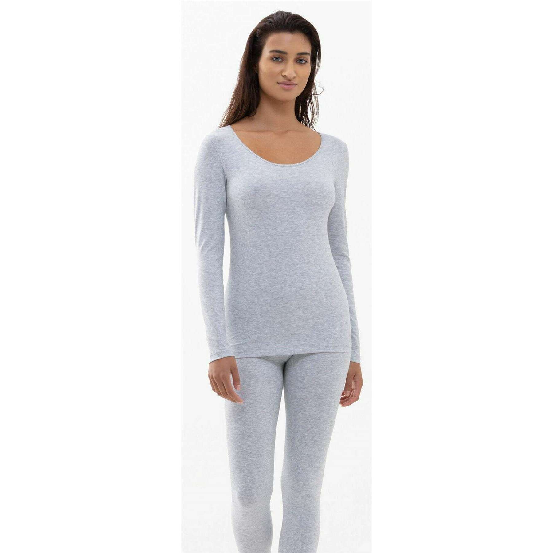 Maglia a maniche lunghe in puro cotone Mey - Grigio chiaro melange