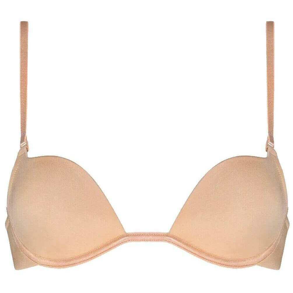 • Scollo molto basso, coppe imbottite, ferretto, fascia sottile sotto il seno, spalline regolabili, design a 2, chiusura con gancio e occhiello