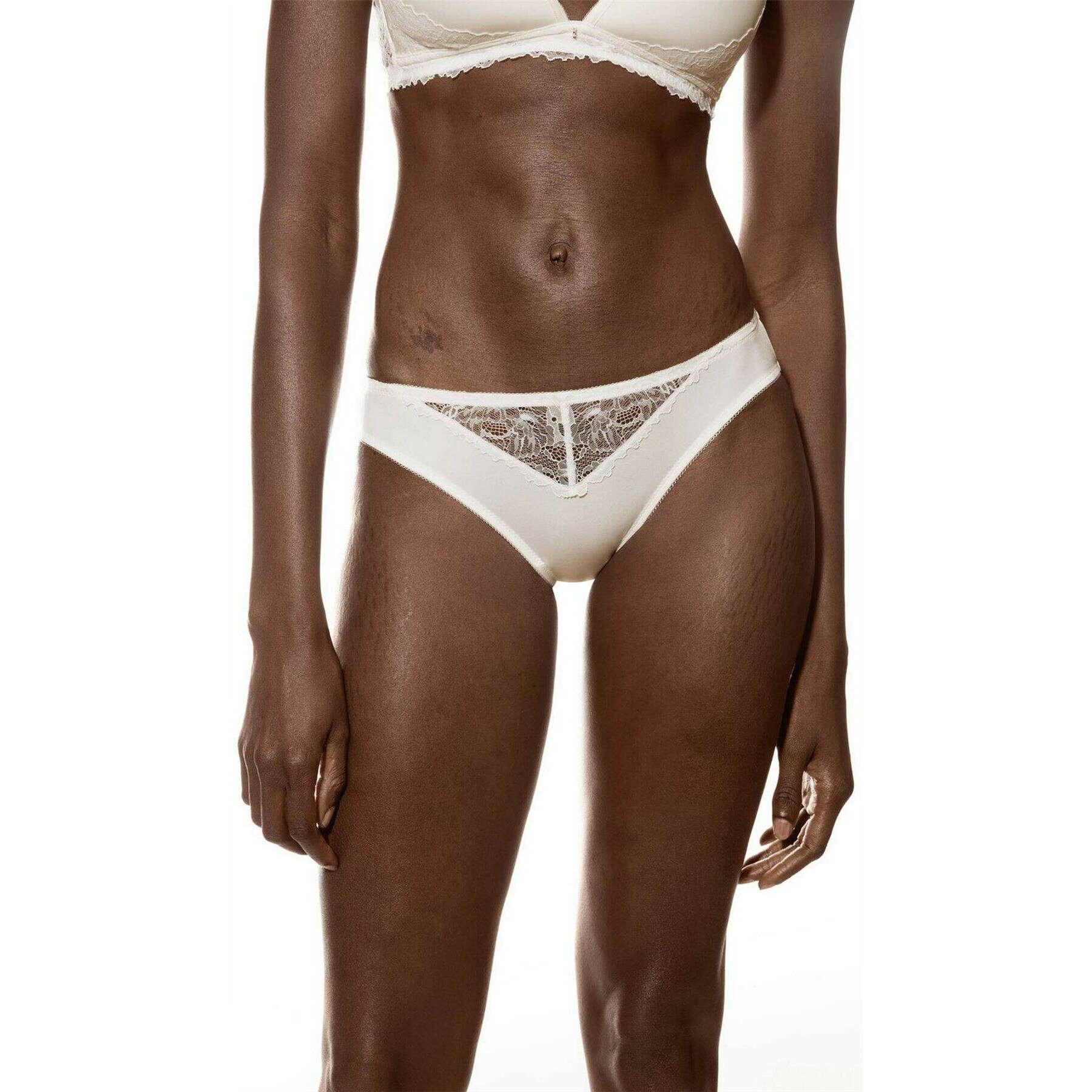 • OEKO-TEX Standard 100, vestibilità a vita bassa, cintura piatta, inserto in pizzo sul davanti, morbide aperture sulle gambe, inserto in cotone sul tassello, pizzo bicolore