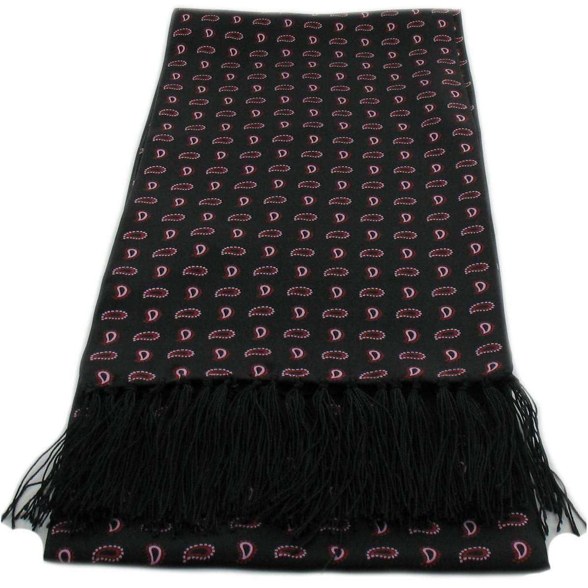 Questa sciarpa di seta di pino nera ha un nodo a mano da 5 cm nappe frillose ad ogni estremità per dare alla sciarpa di seta stile extra. Questa sciarpa di seta nera alla moda ha il design di lusso di pino piccolo. Questa favolosa sciarpa di seta nera nera di Michelsons di Londra è realizzata dal 100% della seta fine, quindi la morbidezza è incredibile.