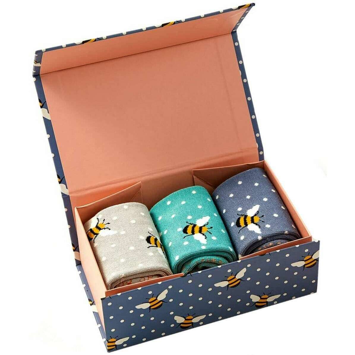 Miss Sparrow London Confezione da 3 scatole di calzini Bumble Bee - Verde/Blu/Grigio