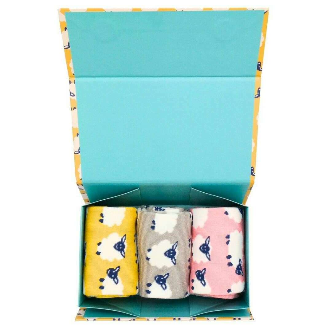 Miss Sparrow London Confezione da 3 scatole di calzini Happy Sheep - Giallo/Grigio/Rosa