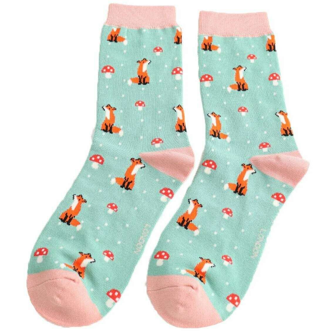 Calzini in bambù Miss Sparrow London Fox e Toadstool - Verde