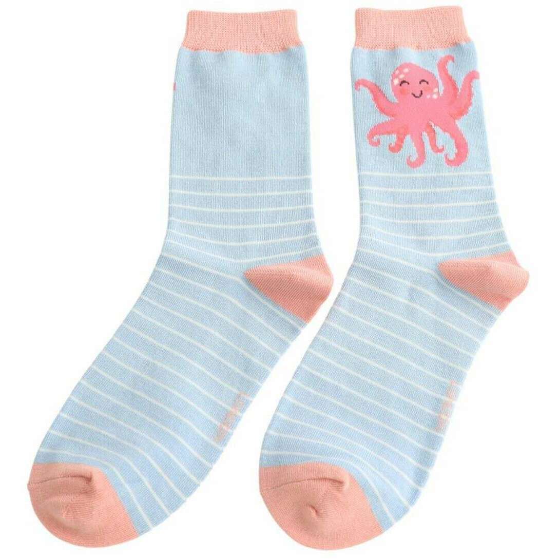 Calzini Miss Sparrow London Pink Octopus Bamboo - Blu polvere