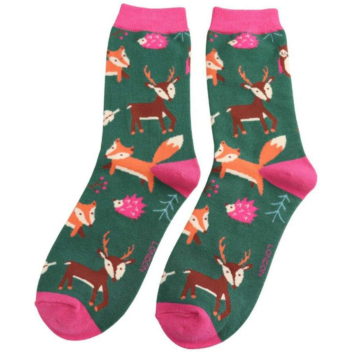 Calzini in bambù Miss Sparrow London Woodland Animals - Verde scuro