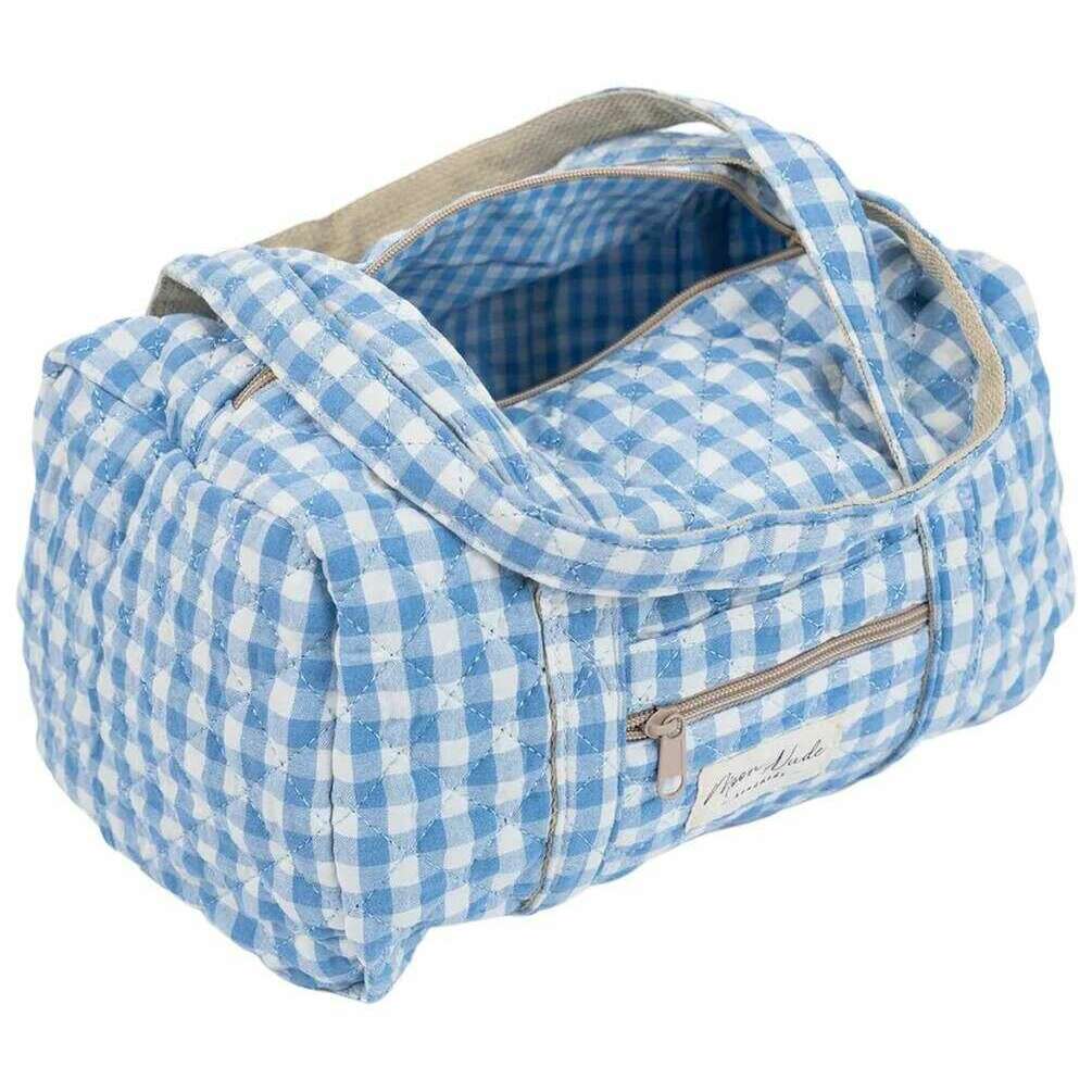Realizzato in cotone al 100% è questo mini borsone azzurro da donna blu/bianco della designer Moon Nude. Misura 18 cm (altezza) x 31 cm (larghezza) x 18 cm (profondità). Si consiglia di lavare a mano in acqua fredda con un detersivo delicato o di lavare al rovescio con un ciclo delicato. per mantenere questa borsa in buone condizioni. Tutte le borse sono complete di confezione color nude lunare. Il mini borsone Moon Nude Azure - Blu/Bianco presenta un bellissimo design trapuntato fatto a mano. Questa borsa presenta una tasca esterna con cerniera, un interno spazioso e due grandi manici, perfetti per una borsa casual per uscire o come regalo.