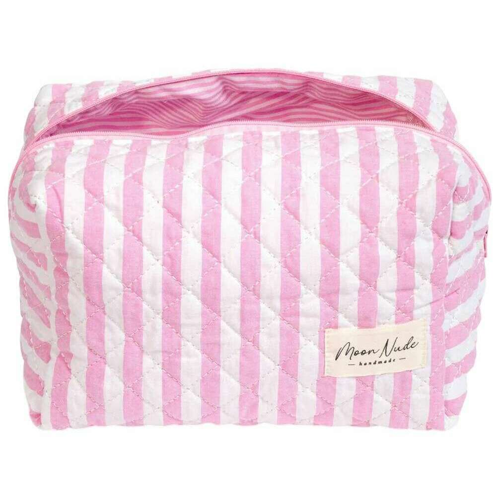 Realizzata in cotone rosa al 100%, questa grande borsa per il trucco Barbie di Moon Nude è perfetta per le donne e un must have. Misura 15 cm (altezza) x 25 cm (larghezza) x 15 cm (profondità). Si consiglia di lavare a mano in acqua fredda con un detersivo delicato o di lavare al rovescio con un ciclo delicato. per mantenere questa borsa in buone condizioni. Tutte le borse sono complete di confezione color nude lunare. La borsa grande per trucchi Moon Nude Barbie - Rosa/Bianco è un must assoluto per la tua camera o per la borsa di tutti i giorni. Questa borsa per il trucco terrà tutti i tuoi prodotti più utilizzati insieme e al sicuro, pur essendo elegante e chic grazie al suo design trapuntato fatto a mano.
