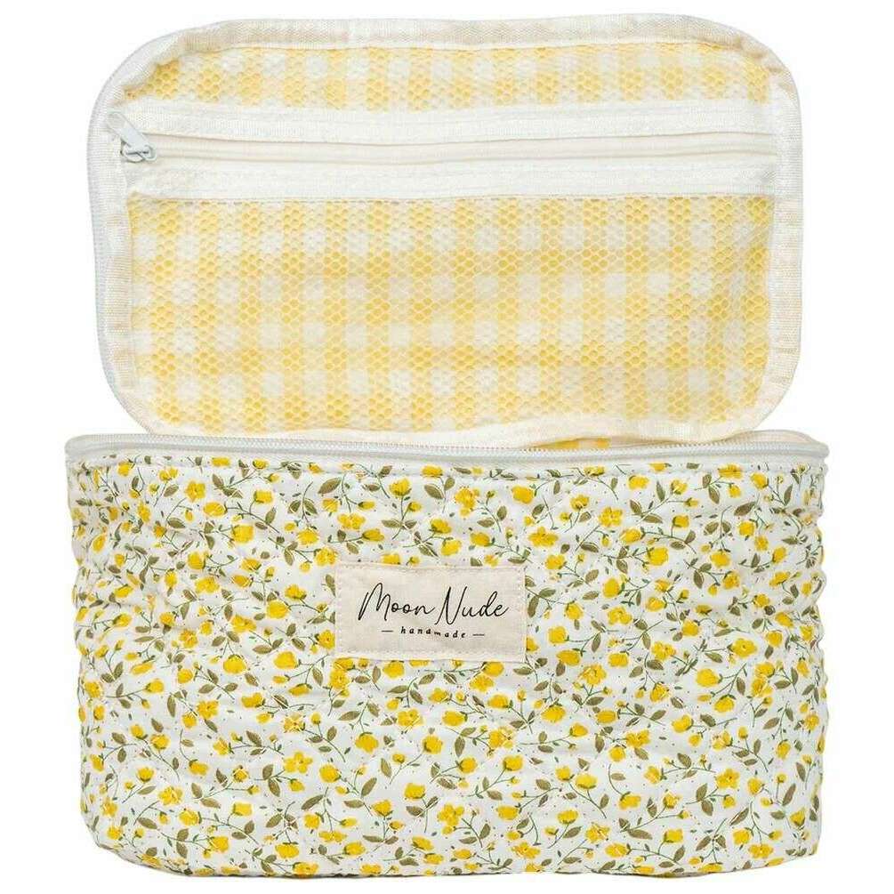 Questa borsa da trucco da donna a forma di ranuncolo del marchio Moon Nude è realizzata al 100% in cotone ed è presentata in bianco. Misura 16 cm (altezza) x 22 cm (larghezza) x 14 cm (profondità). Si consiglia di lavare a mano in acqua fredda con un detersivo delicato o di lavare al rovescio con un ciclo delicato. per mantenere questa borsa in buone condizioni. Tutte le borse sono complete di confezione color nude lunare. Il beauty case Moon Nude Buttercup - Bianco/Giallo è una necessità assoluta per i viaggi o per l'uso quotidiano. Questa borsa per cosmetici manterrà sicuramente tutto il tuo trucco o la cura della pelle in un unico posto, pur essendo elegante e alla moda con il suo design trapuntato fatto a mano.