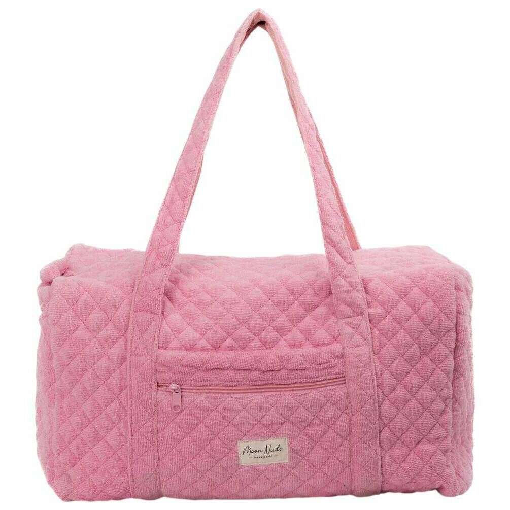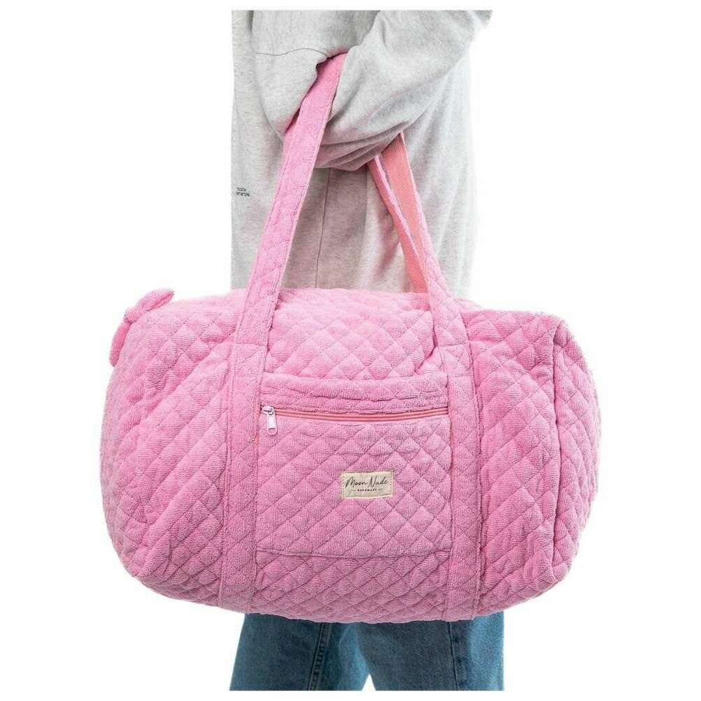 Presentato dal marchio Moon Nude, questo borsone grande da donna rosa candy è realizzato al 100% in cotone. Misura 30 cm (altezza) x 50 cm (larghezza) x 28 cm (profondità). Si consiglia di lavare a mano in acqua fredda con un detersivo delicato o di lavare al rovescio con un ciclo delicato. per mantenere questa borsa in buone condizioni. Tutte le borse sono complete di confezione color nude lunare. Il borsone grande Moon Nude Candy - Rosa presenta un bellissimo design trapuntato fatto a mano. Questa borsa presenta una tasca esterna con cerniera, un interno spazioso e due grandi manici, perfetti per le fughe del fine settimana o per trasportare molti effetti personali.