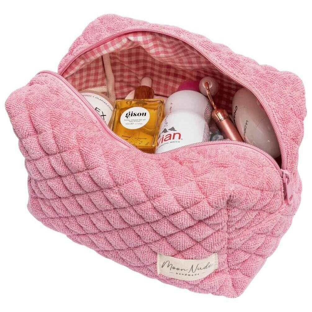 Questa grande borsa per il trucco da donna è realizzata dalla marca Moon Nude in colore rosa ed è realizzata al 100% in cotone. Misura 15 cm (altezza) x 25 cm (larghezza) x 15 cm (profondità). Si consiglia di lavare a mano in acqua fredda con un detersivo delicato o di lavare al rovescio con un ciclo delicato. per mantenere questa borsa in buone condizioni. Tutte le borse sono complete di confezione color nude lunare. La borsa per il trucco grande Moon Nude Candy - Rosa è una necessità assoluta per la tua camera o la borsa di tutti i giorni. Questa borsa per il trucco terrà tutti i tuoi prodotti più utilizzati insieme e al sicuro, pur essendo elegante e chic grazie al suo design trapuntato fatto a mano.