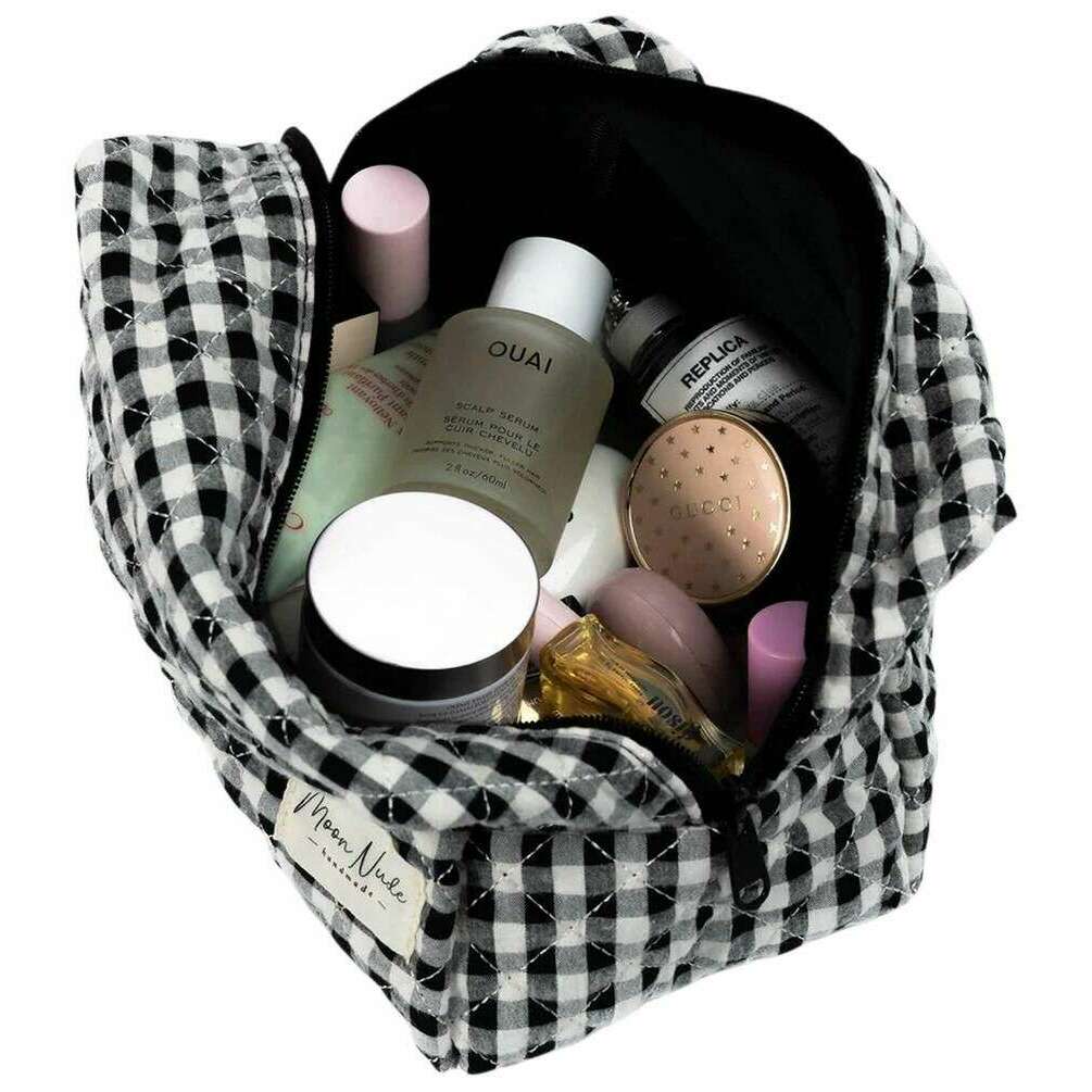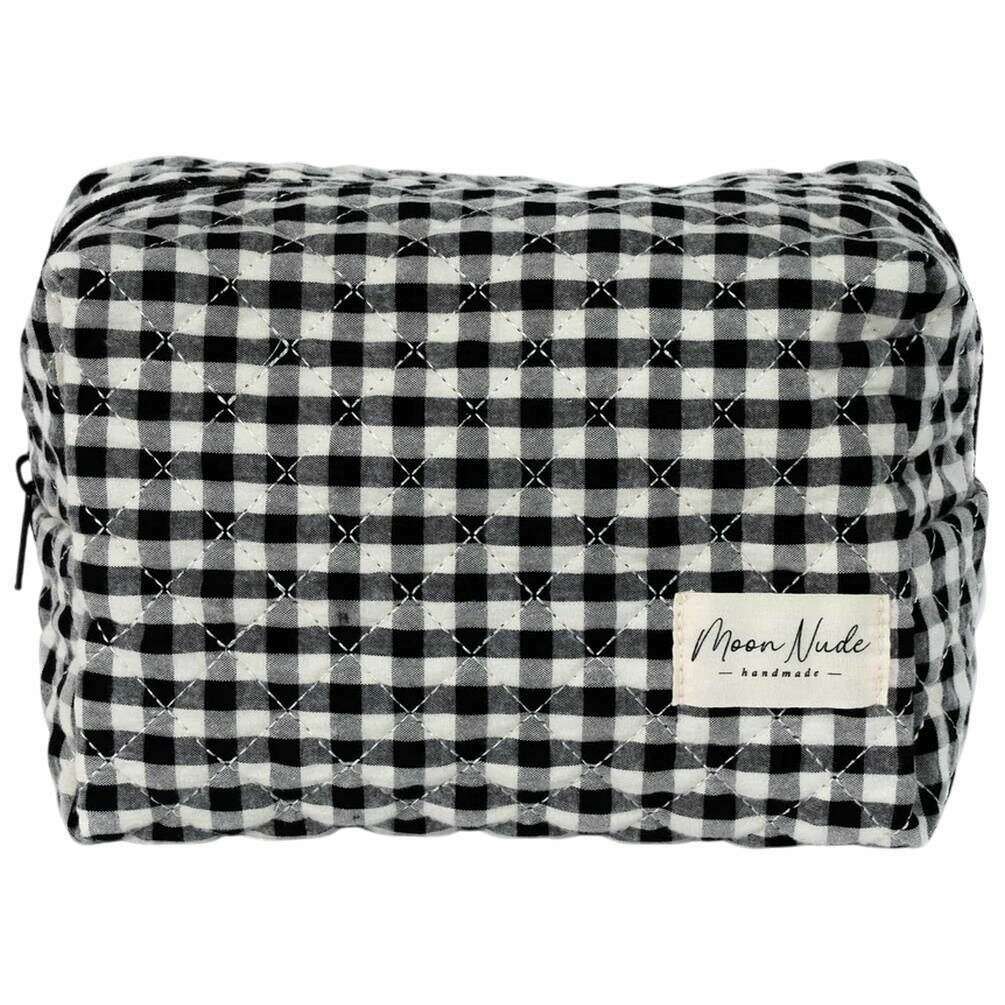 Realizzata al 100% in cotone, questa classica borsa per il trucco grande da donna in bianco e nero è stata realizzata dal designer Moon Nude. Misura 15 cm (altezza) x 25 cm (larghezza) x 15 cm (profondità). Si consiglia di lavare a mano in acqua fredda con un detersivo delicato o di lavare al rovescio con un ciclo delicato. per mantenere questa borsa in buone condizioni. Tutte le borse sono complete di confezione color nude lunare. La borsa per il trucco grande Moon Nude Classic - Nero/Bianco è una necessità assoluta per la tua camera o la borsa di tutti i giorni. Questa borsa per il trucco terrà tutti i tuoi prodotti più utilizzati insieme e al sicuro, pur essendo elegante e chic grazie al suo design trapuntato fatto a mano.