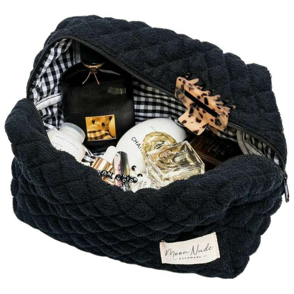 Presentata dal marchio Moon Nude, questa grande borsa per il trucco da donna Space in bianco e nero è realizzata al 100% in cotone. Misura 15 cm (altezza) x 25 cm (larghezza) x 15 cm (profondità). Si consiglia di lavare a mano in acqua fredda con un detersivo delicato o di lavare al rovescio con un ciclo delicato. per mantenere questa borsa in buone condizioni. Tutte le borse sono complete di confezione color nude lunare. La borsa per il trucco grande Moon Nude Space - Nero/Bianco è una necessità assoluta per la tua camera o la borsa di tutti i giorni. Questa borsa per il trucco terrà tutti i tuoi prodotti più utilizzati insieme e al sicuro, pur essendo elegante e chic grazie al suo design trapuntato fatto a mano.