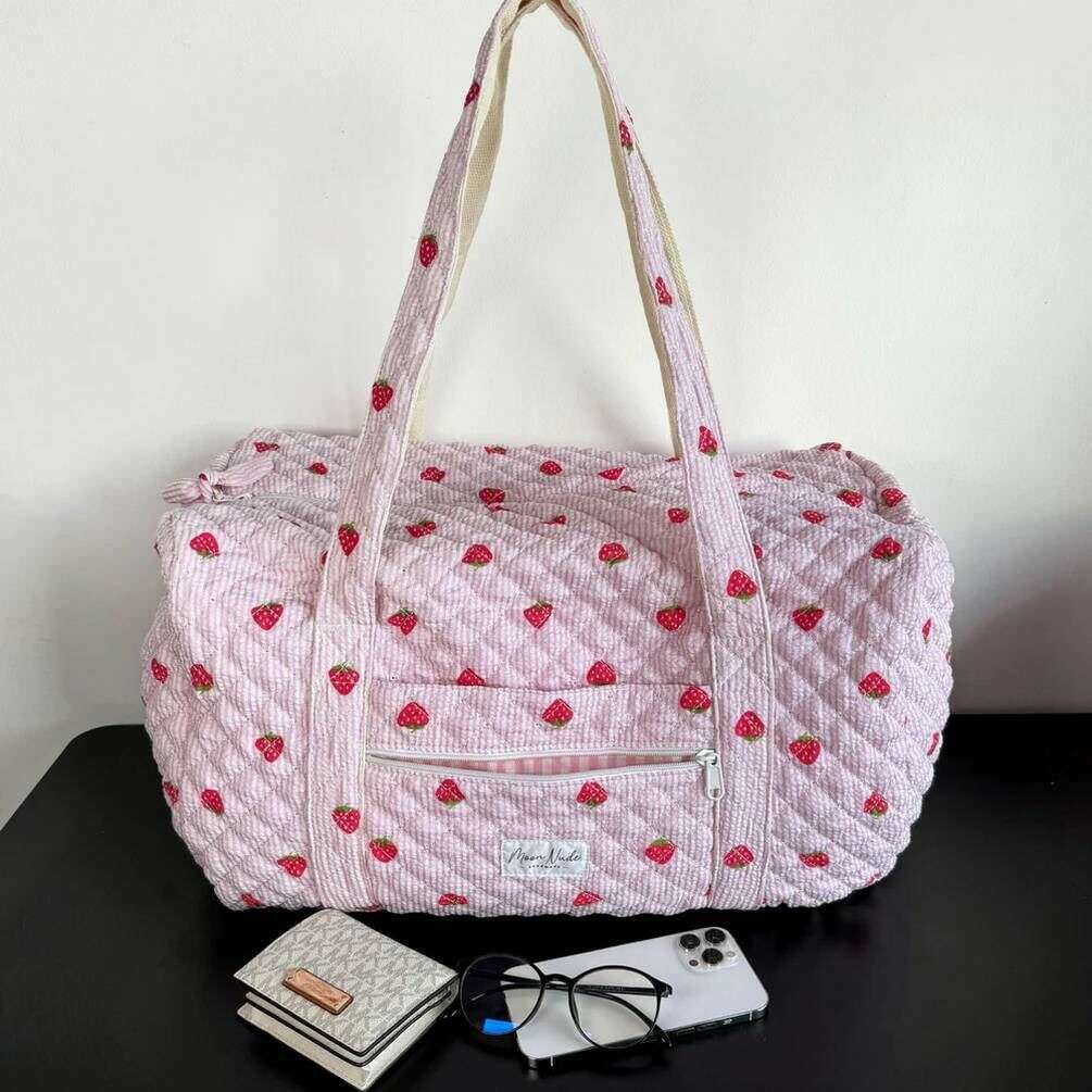 Presentato dal marchio Moon Nude, questo borsone grande da donna rosa/rosso fragola è realizzato al 100% in cotone. Misura 30 cm (altezza) x 50 cm (larghezza) x 28 cm (profondità). Si consiglia di lavare a mano in acqua fredda con un detersivo delicato o di lavare al rovescio con un ciclo delicato. per mantenere questa borsa in buone condizioni. Tutte le borse sono complete di confezione color nude lunare. Il borsone grande Moon Nude Strawberry - Rosa/Rosso presenta un bellissimo design trapuntato fatto a mano. Questa borsa presenta una tasca esterna con cerniera, un interno spazioso e due grandi manici, perfetti per le fughe del fine settimana o per trasportare molti effetti personali.
